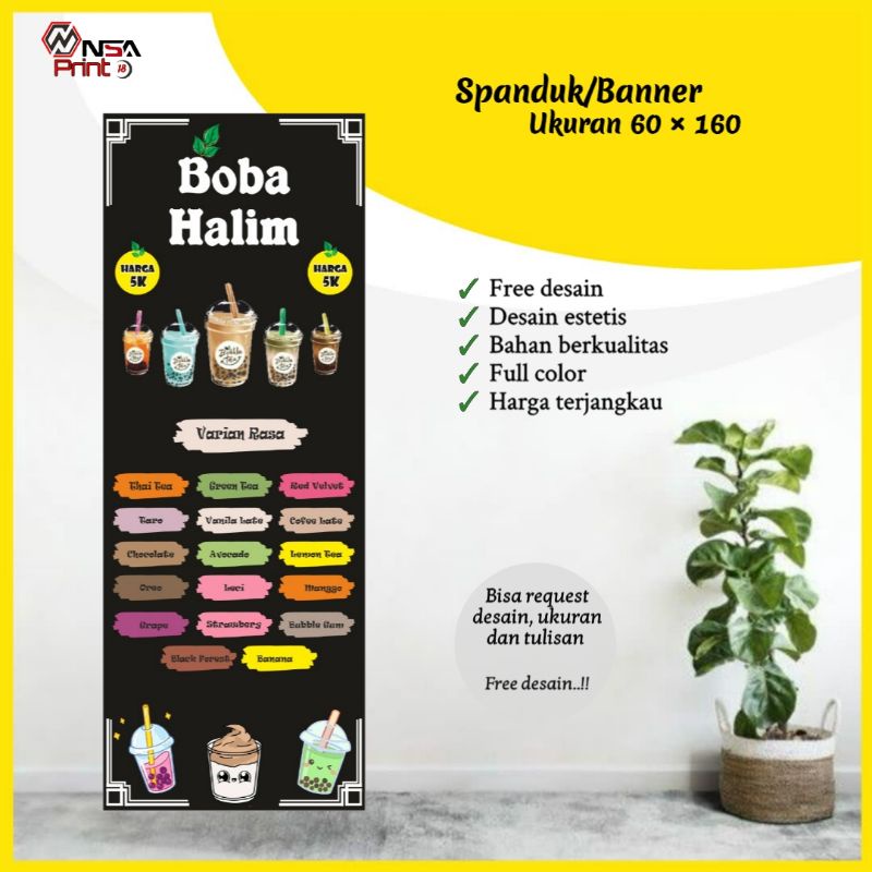 Cetak banner/spanduk, spanduk minuman Boba, Bisa request & free desain