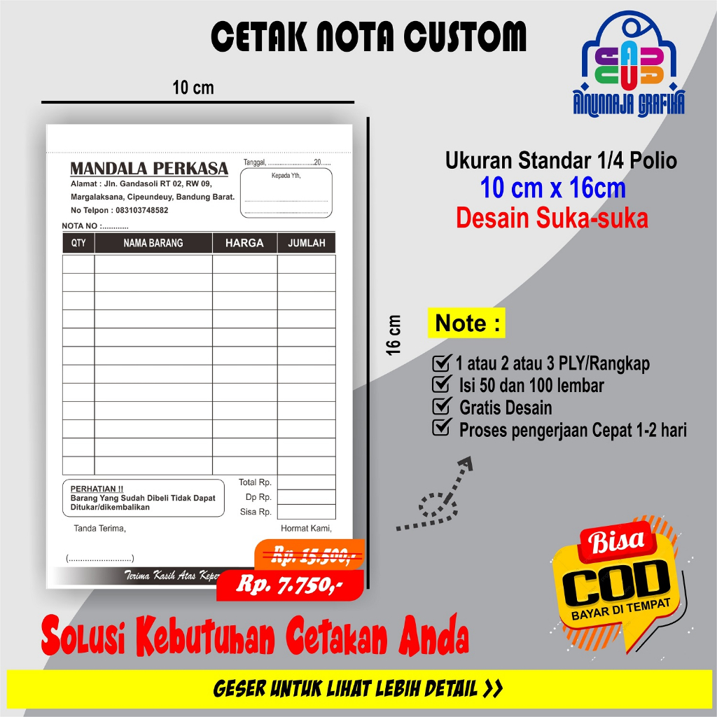 Cetak nota custom nama olshop sendiri ukuran 1/4 2 ply dan 3 ply dan 1 ply ukuran 50 lbr dan 100 lbr