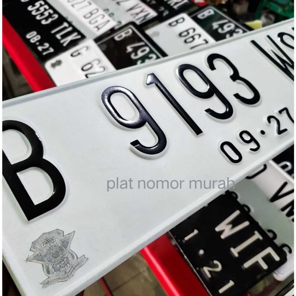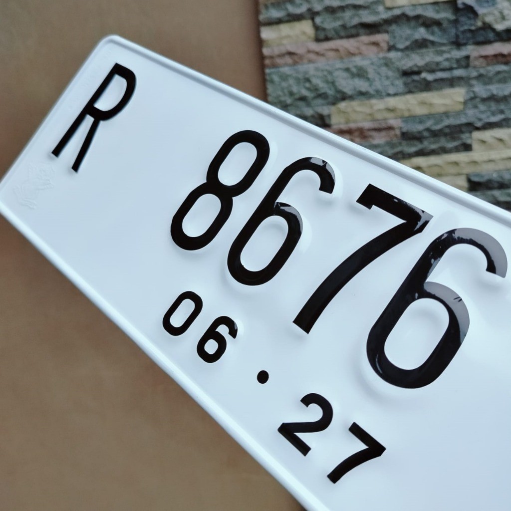 Cetak plat mobil standar putih font baru berlogo