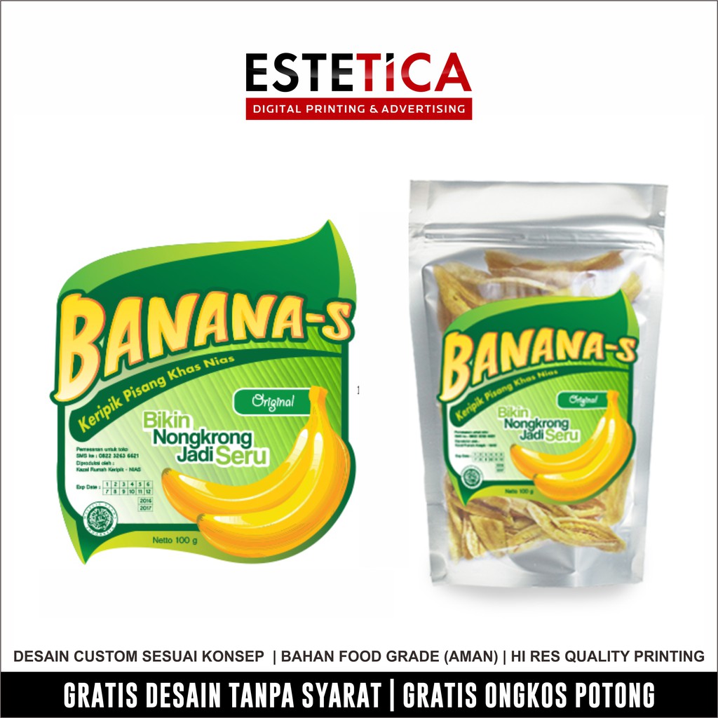 Cetak sticker kemasan, cetak sticker keripik pisang, cetak label keripik, grosir sticker toples
