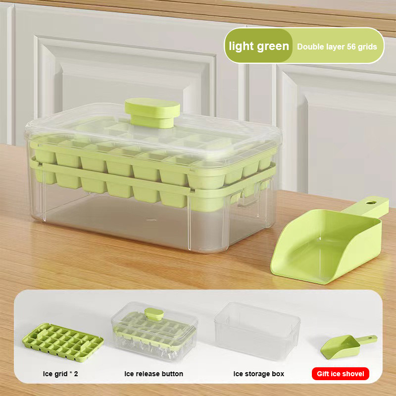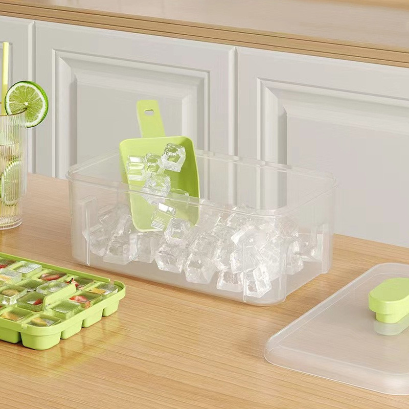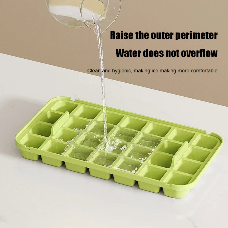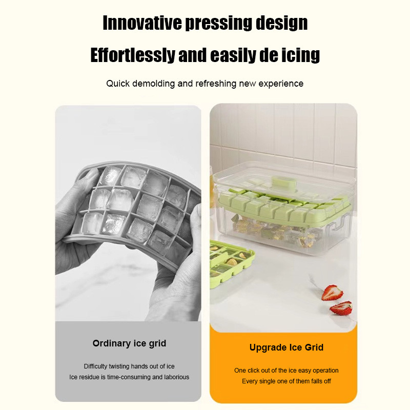 Cetakan Es Batu Ice 32 Grid 2 Tray Silikon Tombol Otomatis Dengan Tutup dan Wadah BPA Free
