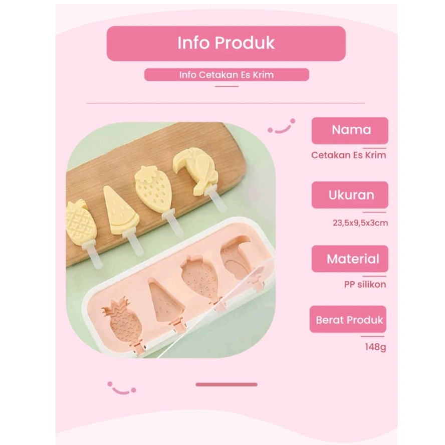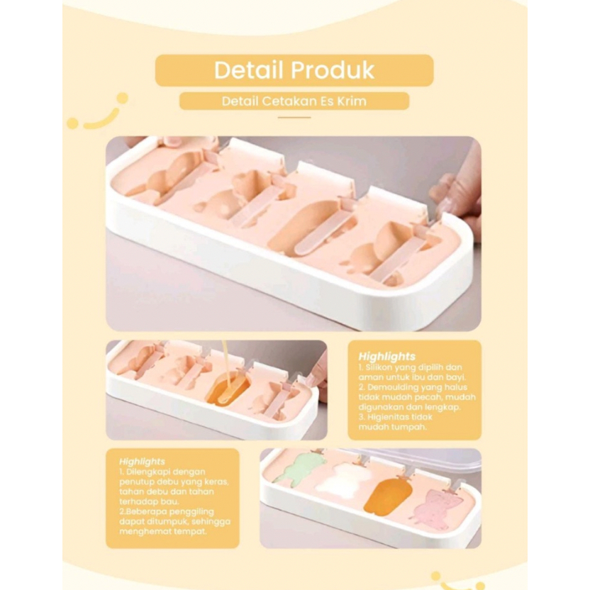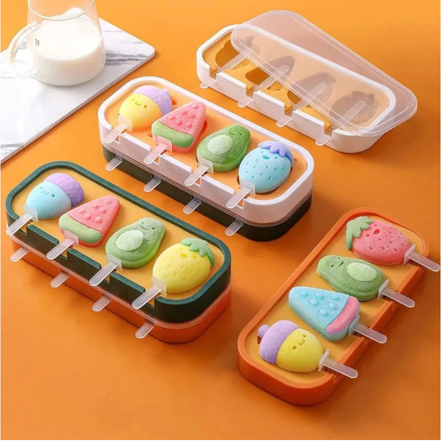 Cetakan Es Krim - Cetakan Es Krim Silikon 4 Slot - Cetakan Es Krim untuk anak-anak membuat stick keju - es krim jelly stick dan puding
