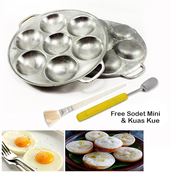 Cetakan Kue Cubit 7 Lubang /Kue Lumpur Mini Loyang /Kue Apem Lubang Free Sodet & Kuas Kue