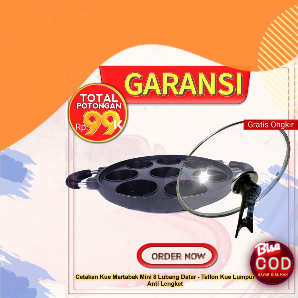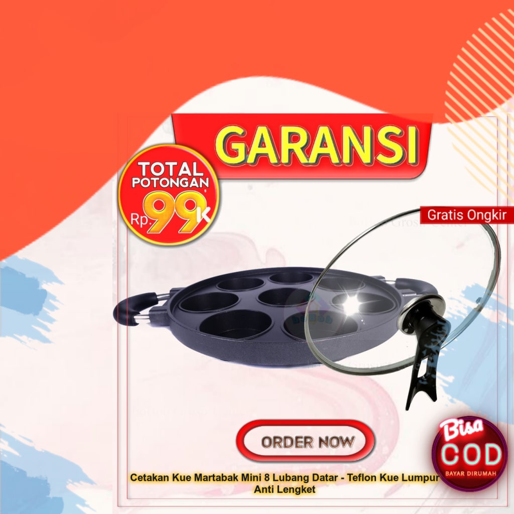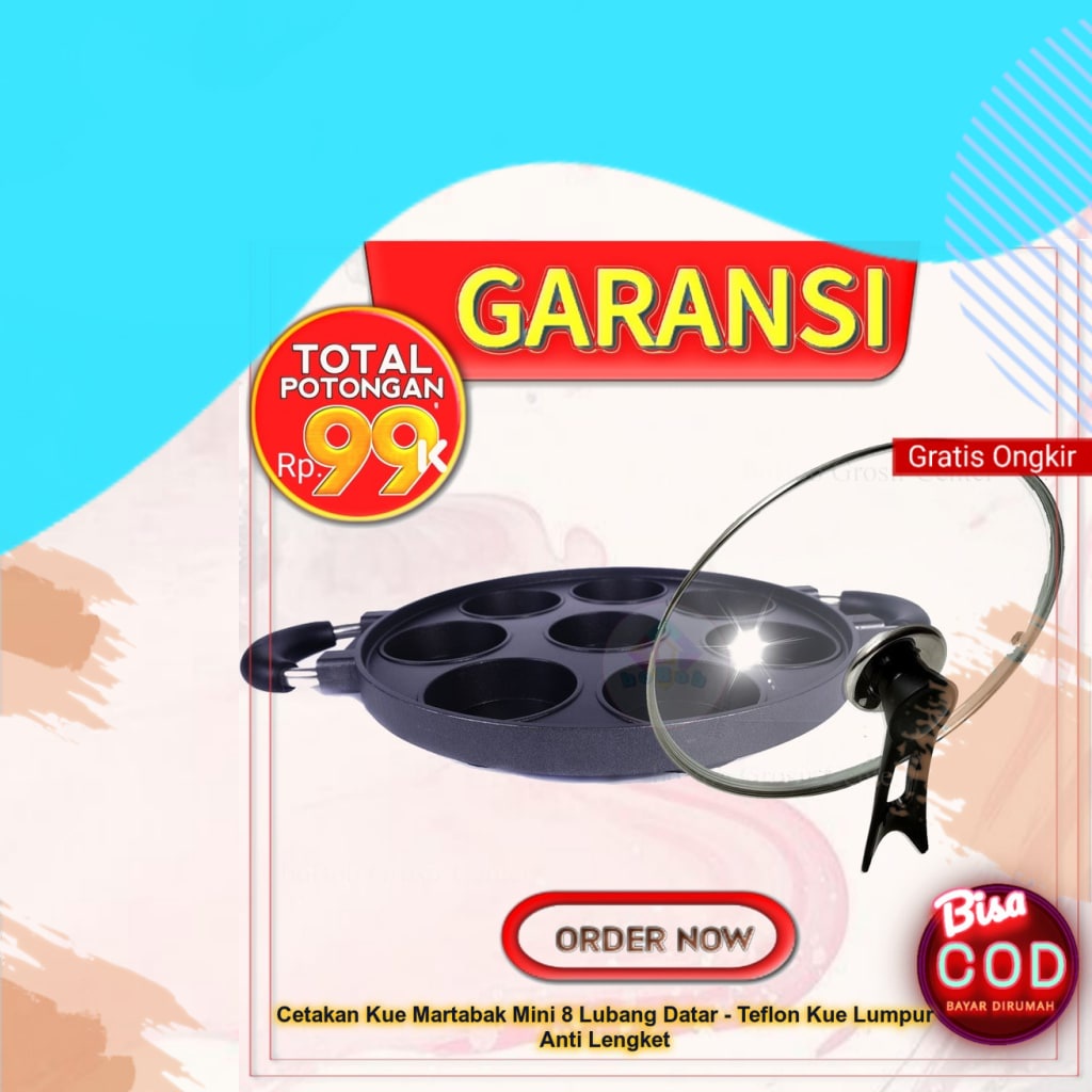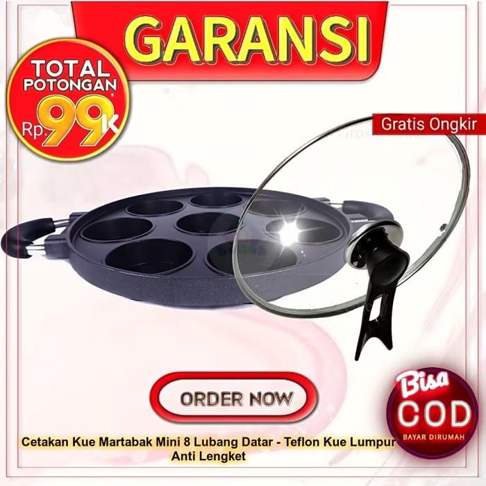 Cetakan Kue Martabak Mini 8 Lubang Datar - Teflon Kue Lumpur Anti Lengket