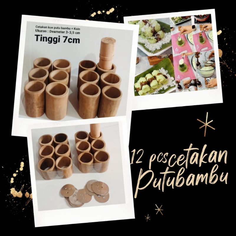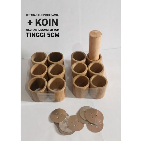 Cetakan kue tradisional Cetakan kue putu bambu Cetakan dari bambu 12 pcs + Selongsong + Coin 12 pcs