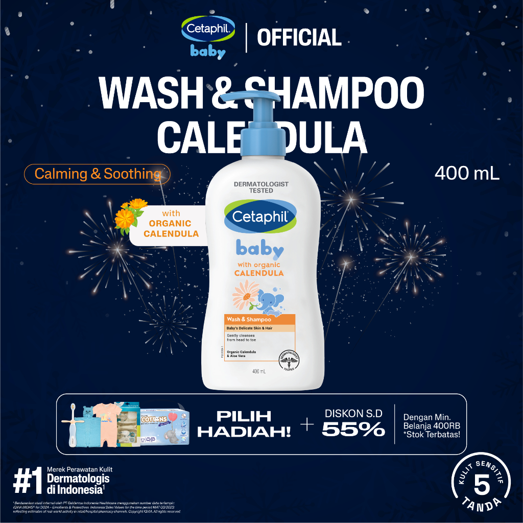 Cetaphil Baby with Organic Calendula Wash & Shampoo 400ml dengan Glycerin, Aloevera dan Calendula Sabun Mandi dan Shampo untuk Perawatan Kulit Bayi Cocok Untuk Kulit Sensitif