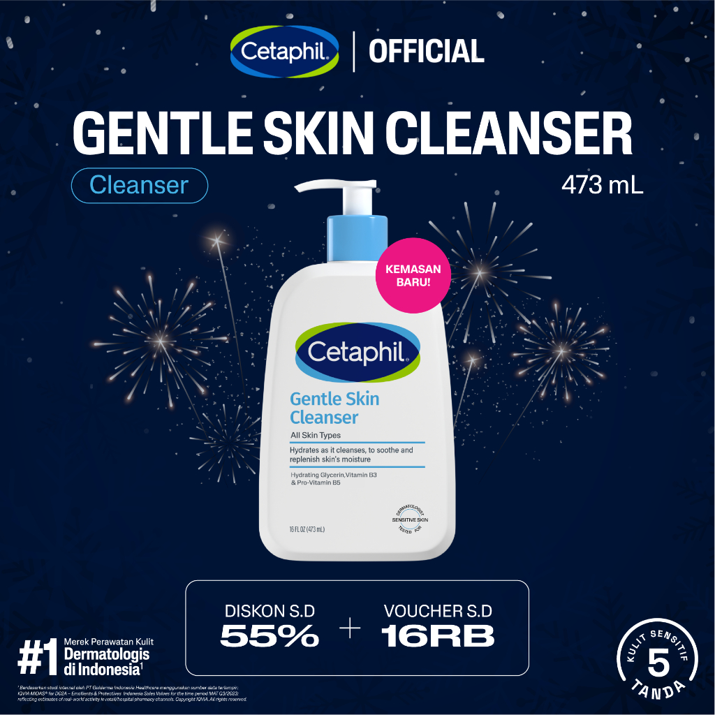 Cetaphil Gentle Skin Cleanser 473ml dengan Niacinamide, Glycerin dan Panthenol Sabun Pembersih Muka Untuk Segala Jenis Kulit