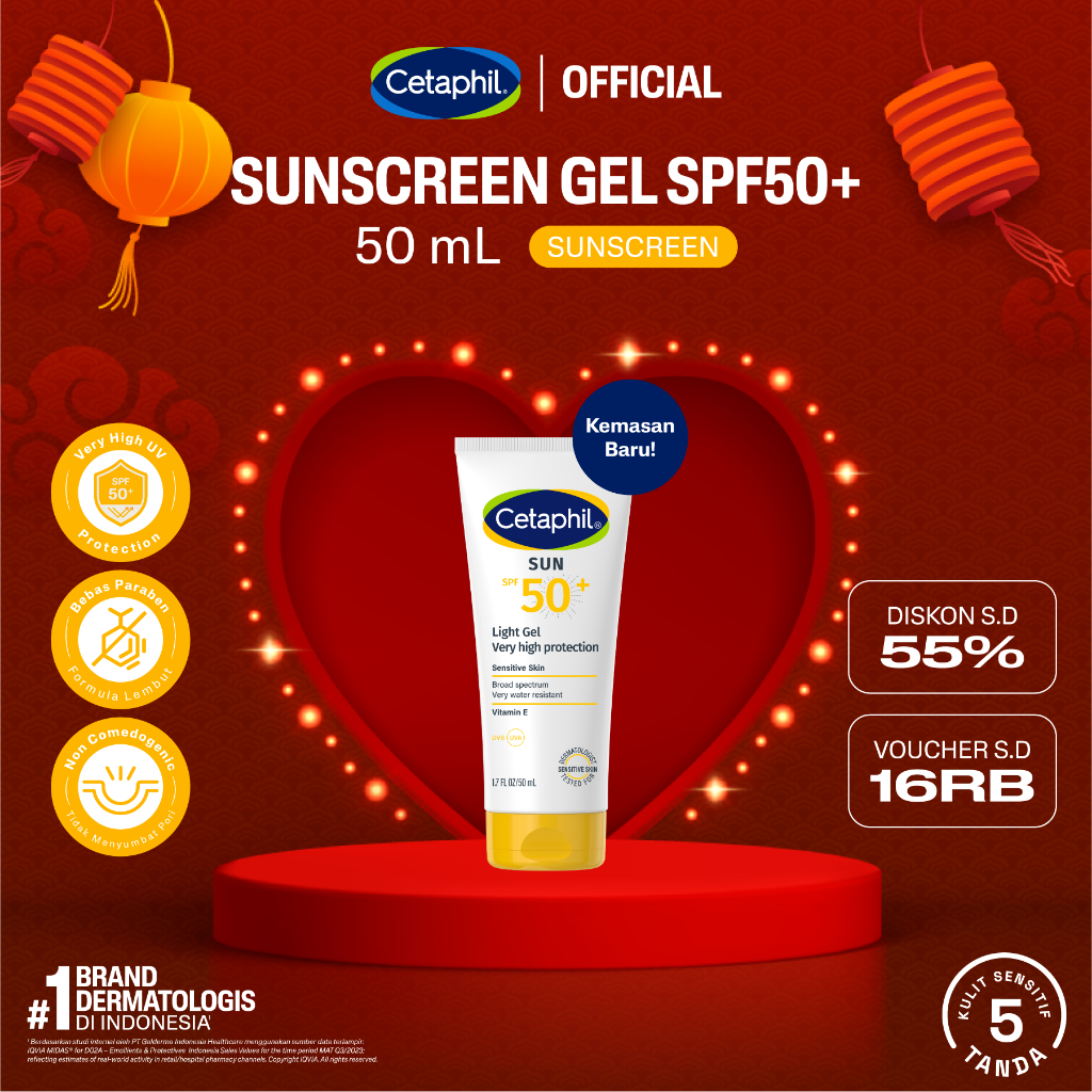 Cetaphil Hybrid Sunscreen SPF50+ Light Gel 50ml untuk kulit sensitif dengan Titanium Dioxide