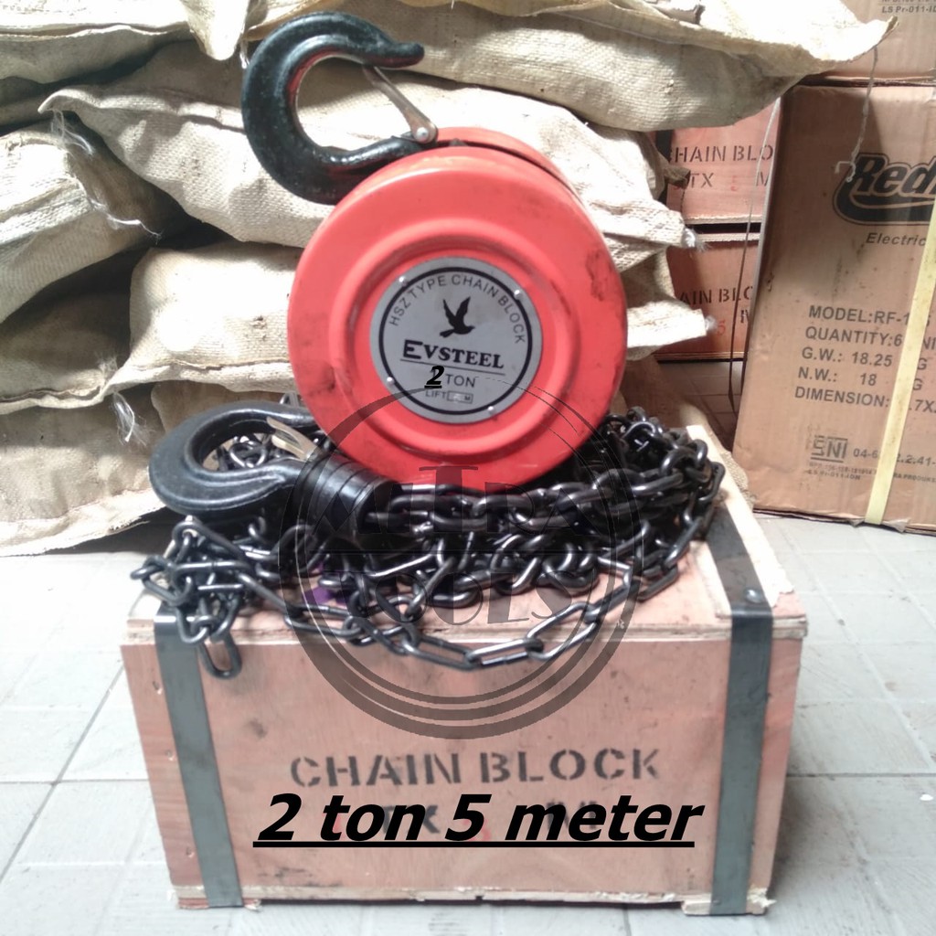 Chain Block Takel Kerekan Rantai 2 Ton x 3 dan 5 Meter Panjang Rantai 3 & 5 M