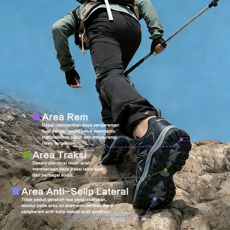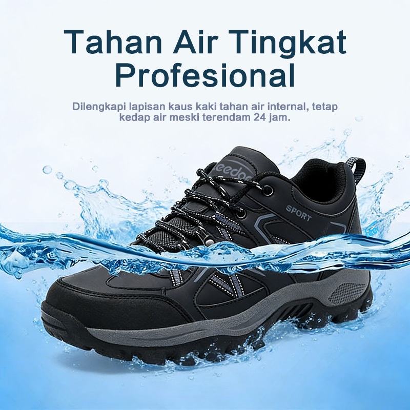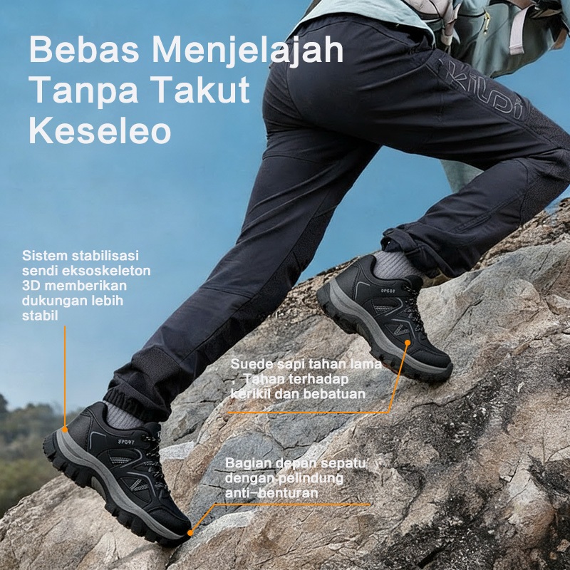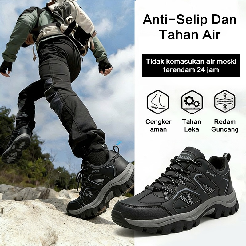 Leedoo Sepatu Hiking Pria Olahraga Outdoor Sepatu Gunung Adventure Anti Slip Shoes Hitam MH208