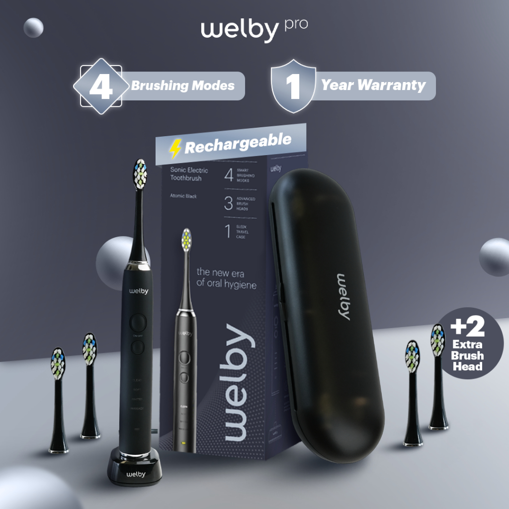 Welby Electric Toothbrush PRO Black Sikat Gigi Elektrik + Brush Head