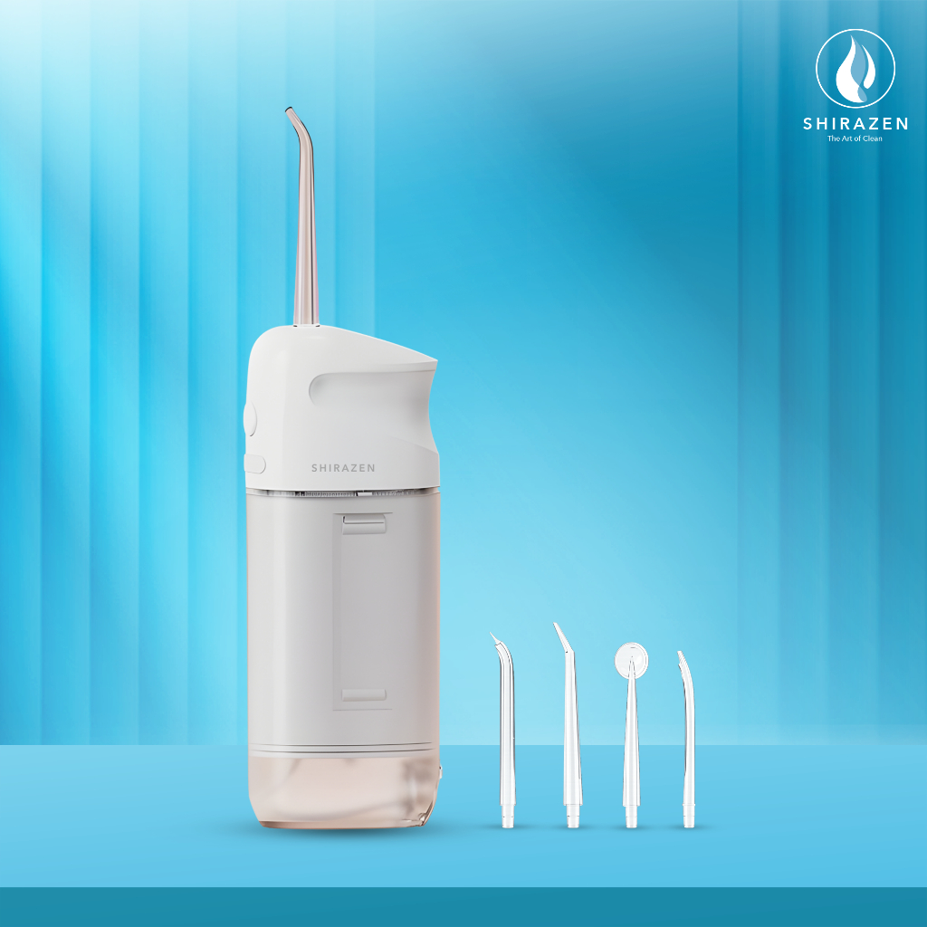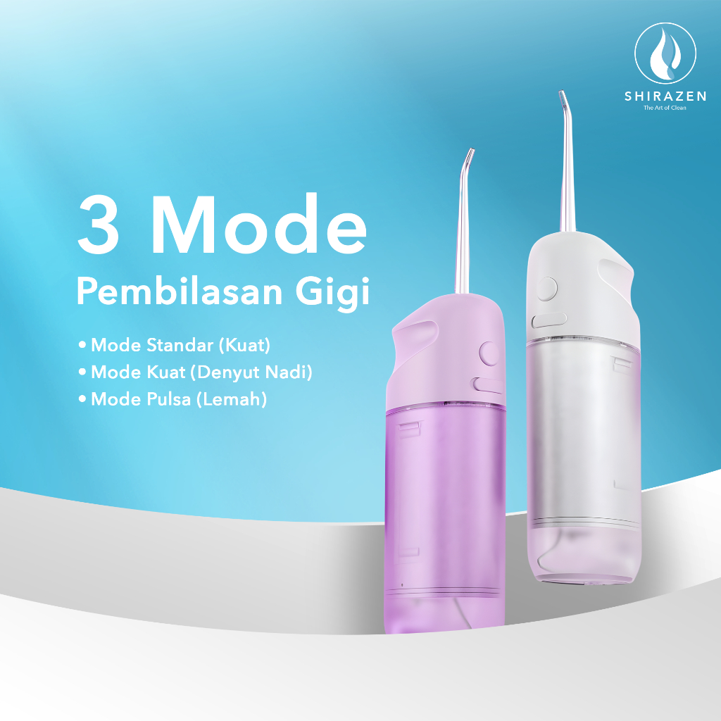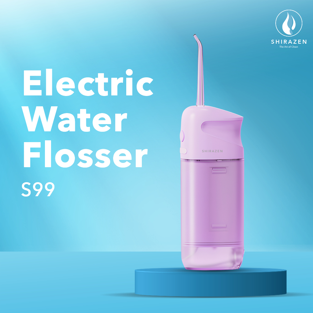 Shirazen Electric Water Flosser S99 Elektrik Oral Irrigator Gigi Portable Nirkabel Plak Karang 1200 Pulse 45 140 PSI 4 Nozel Ortodontik Baterai 40 Hari IPX7
