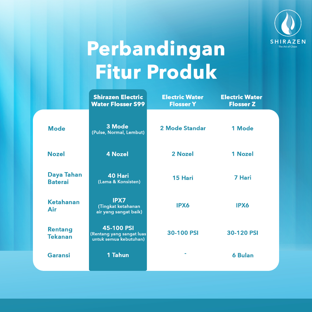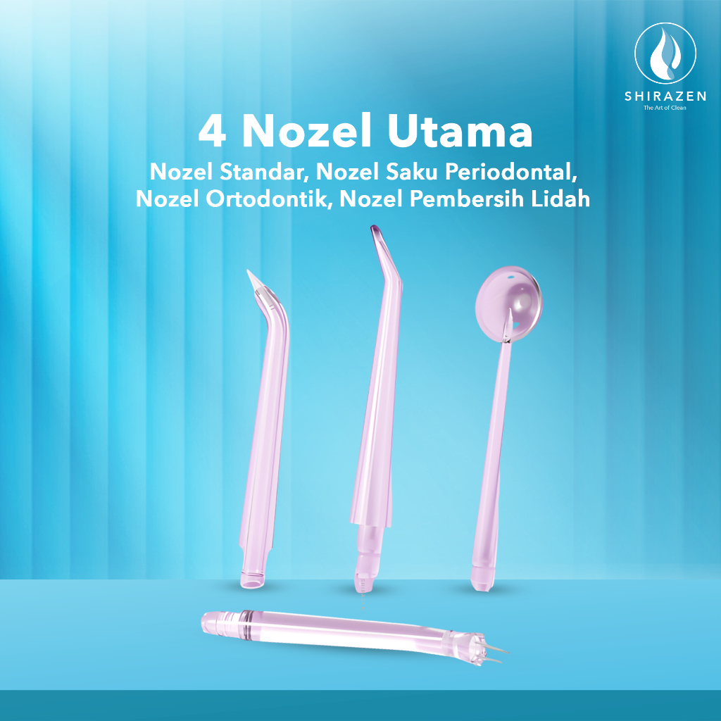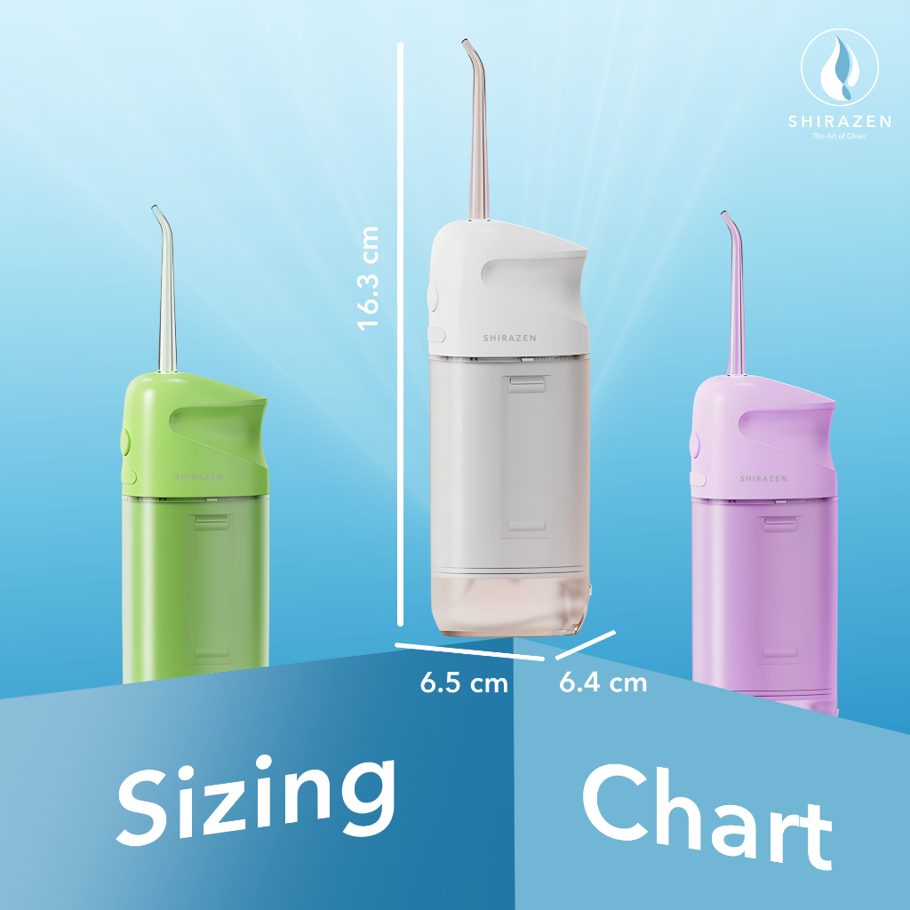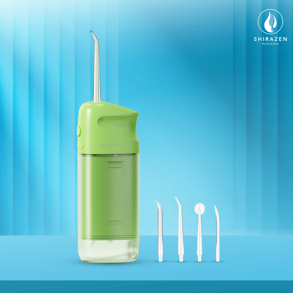 Shirazen Electric Water Flosser S99 Elektrik Oral Irrigator Gigi Portable Nirkabel Plak Karang 1200 Pulse 45 140 PSI 4 Nozel Ortodontik Baterai 40 Hari IPX7