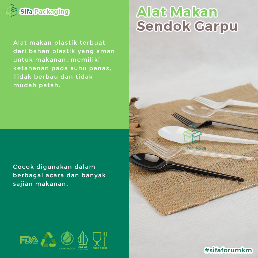 Sendok Plastik Garpu Plastik Putih Hitam Sendok Makan Catering Nasi Box Kuat Murah