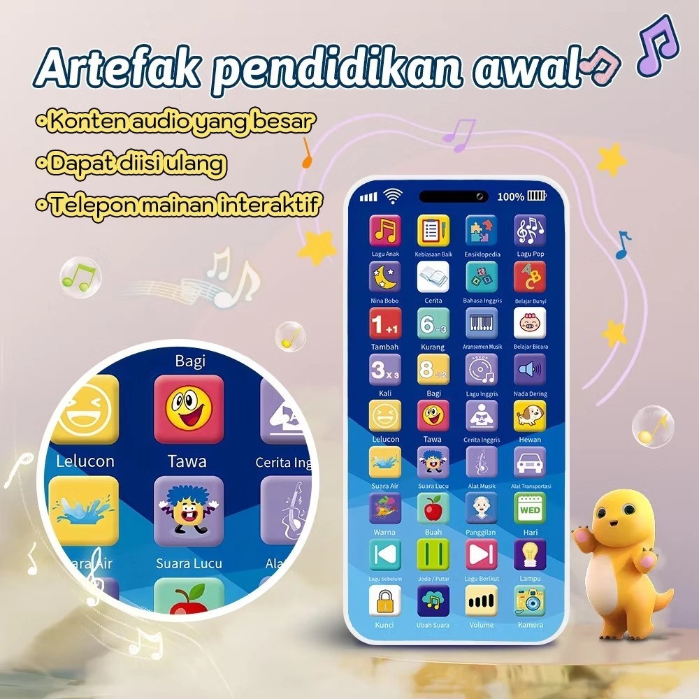HP Edukasi Anak 36 Tombol Mainan Edukasi Anak dengan Lampu Warna-warni dan Musik Dinamis untuk Belajar Bahasa dan Pengetahuan Umum