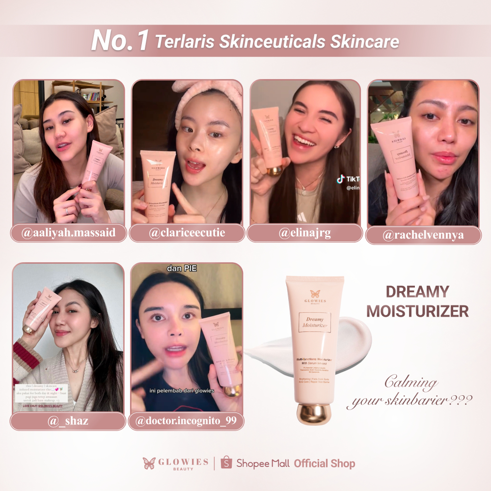 [READY STOCK!!] Glowies Beauty Dreamy Moisturizer Pelembab Wajah 80ml Moisturizer with korean Formulation 7% Azeclair 6% Niacinimide Alpha Arbutin 5x Ceramide Pelembab wajah Kering Mencerahkan Melembabkan aman untuk kulit sensitif & Busui Friendly