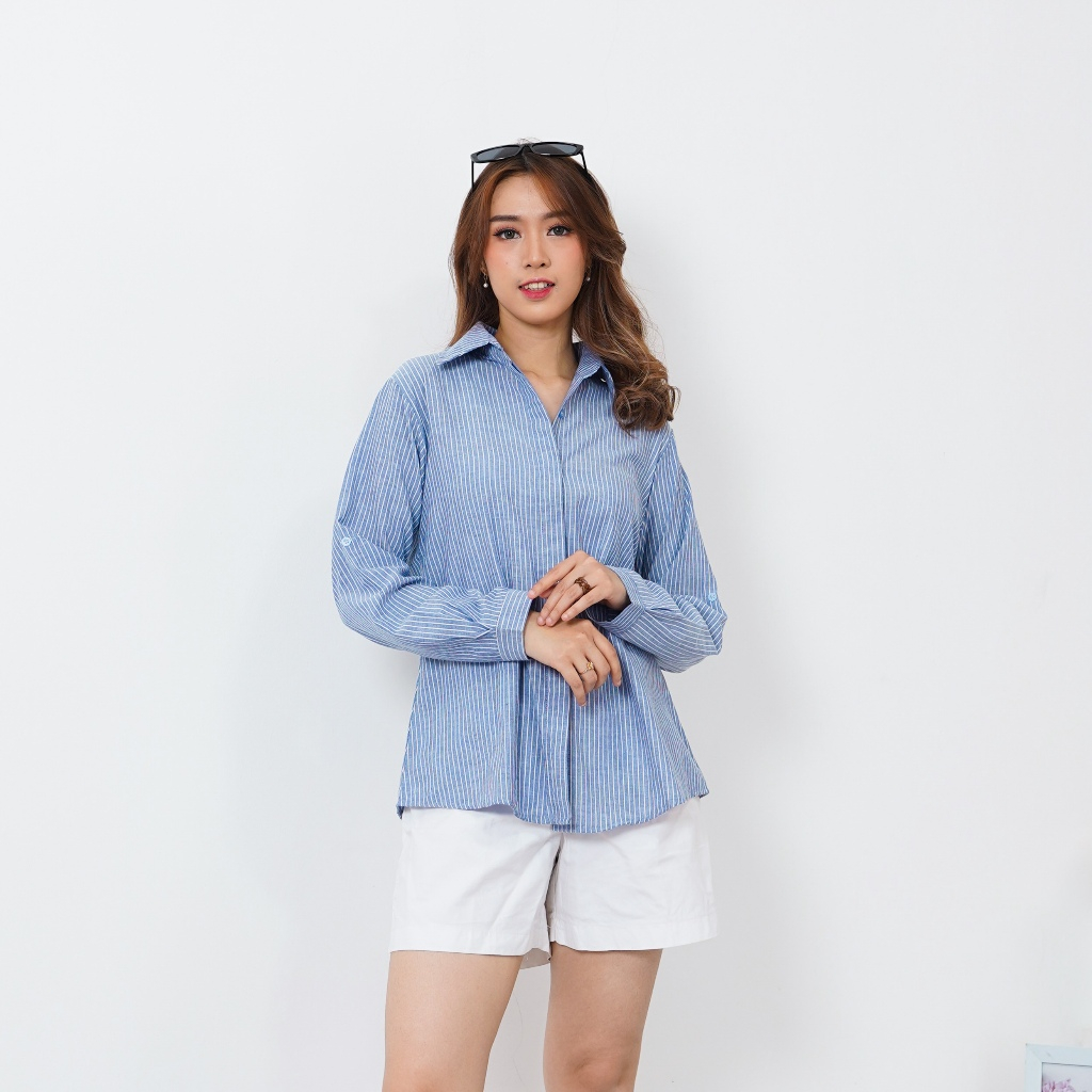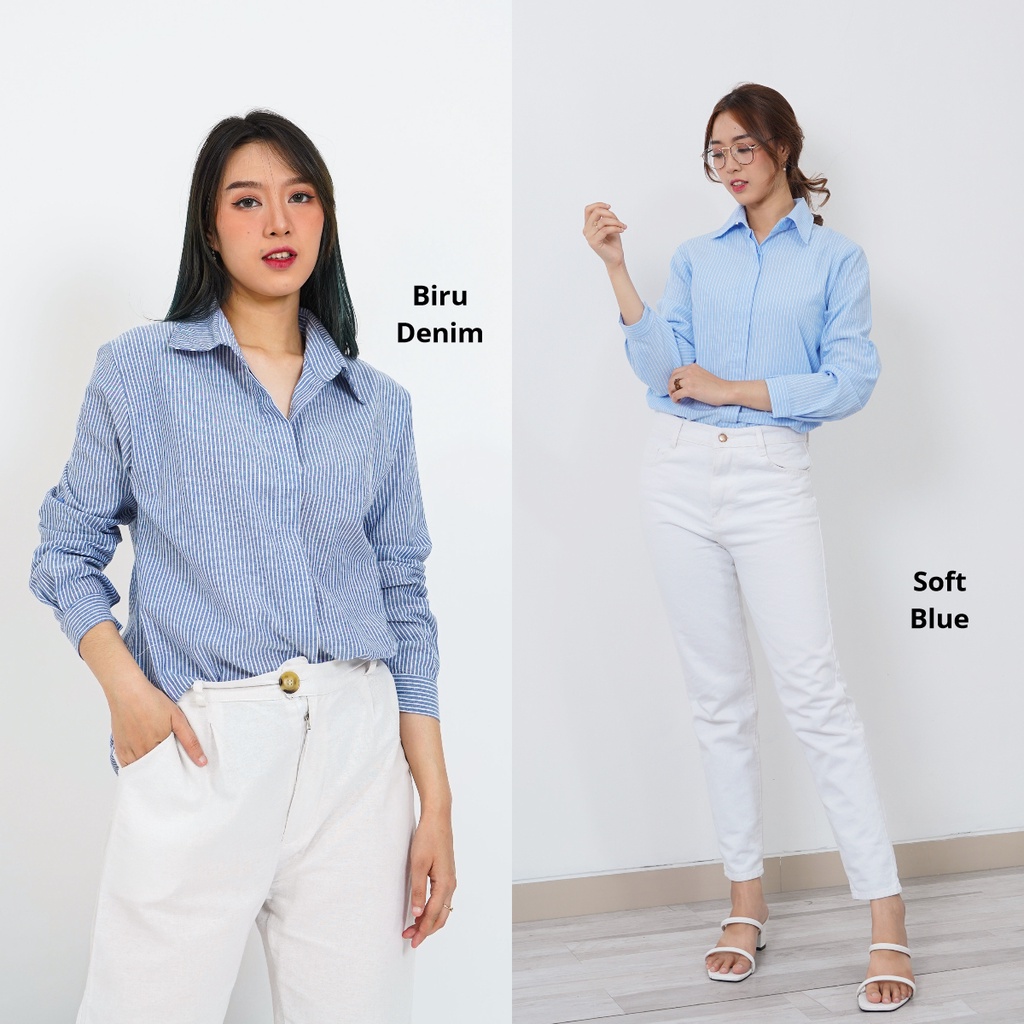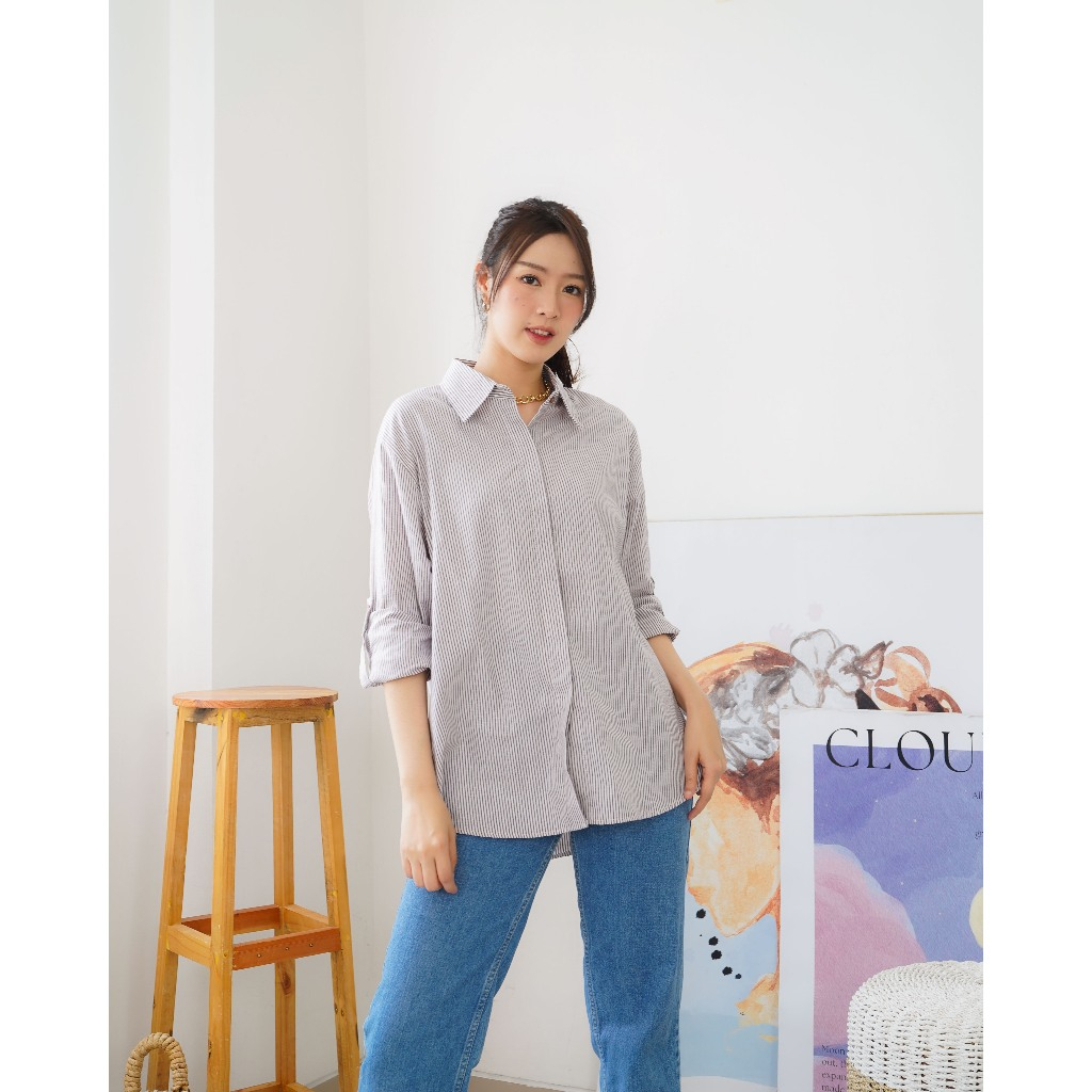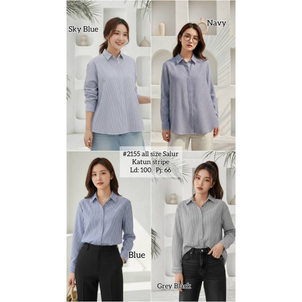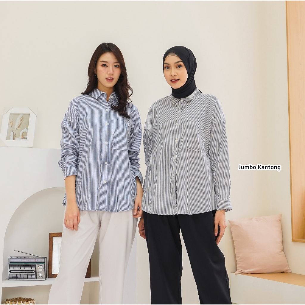 Laila Stripe kemeja full katun cotton salur basic wanita motif stripe ada JUMBO 2155 / 2532 / 2986