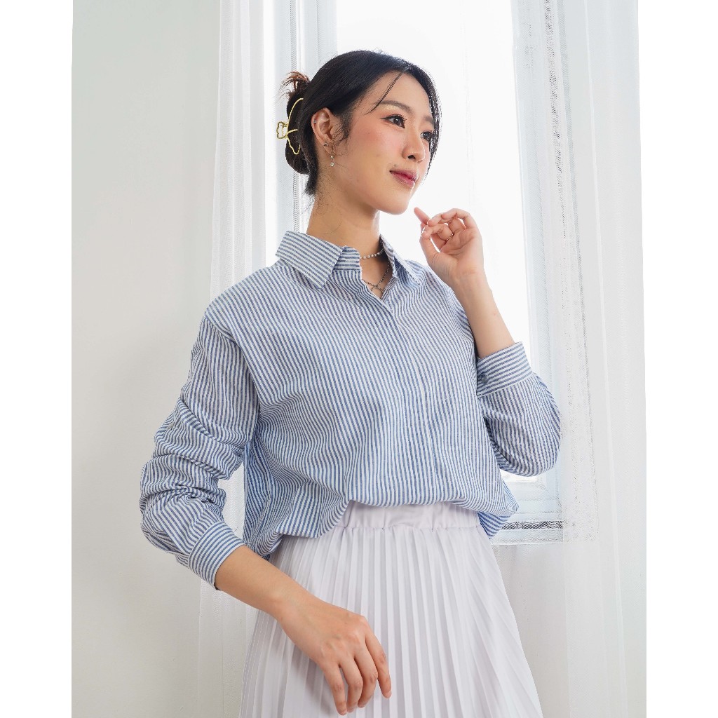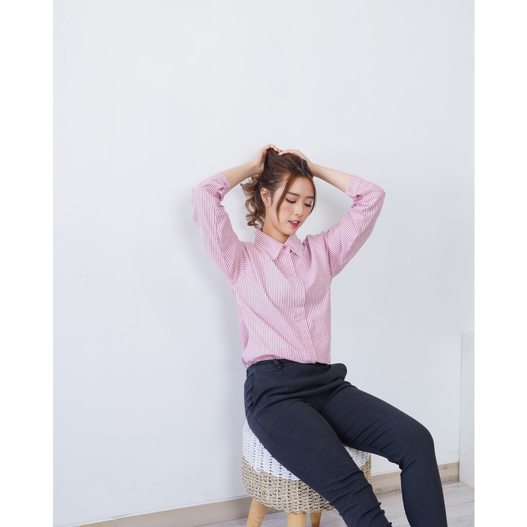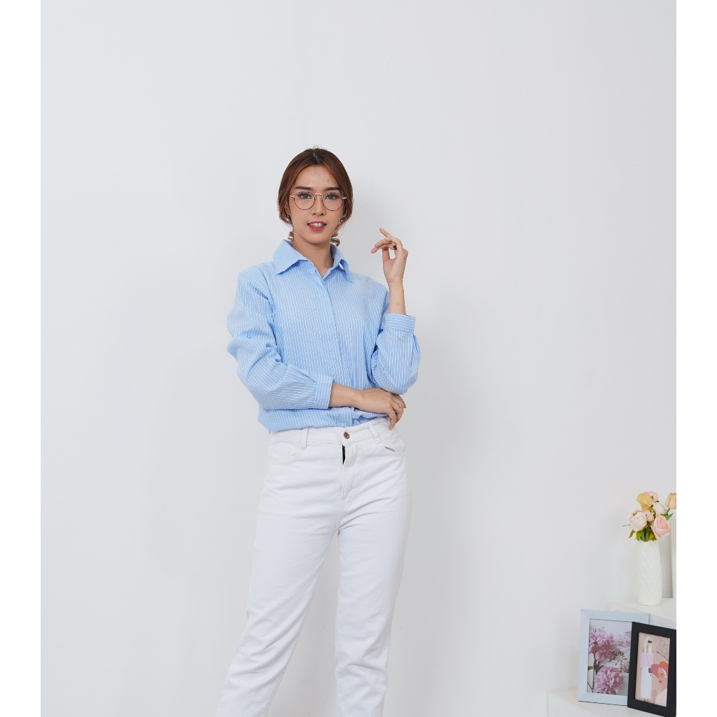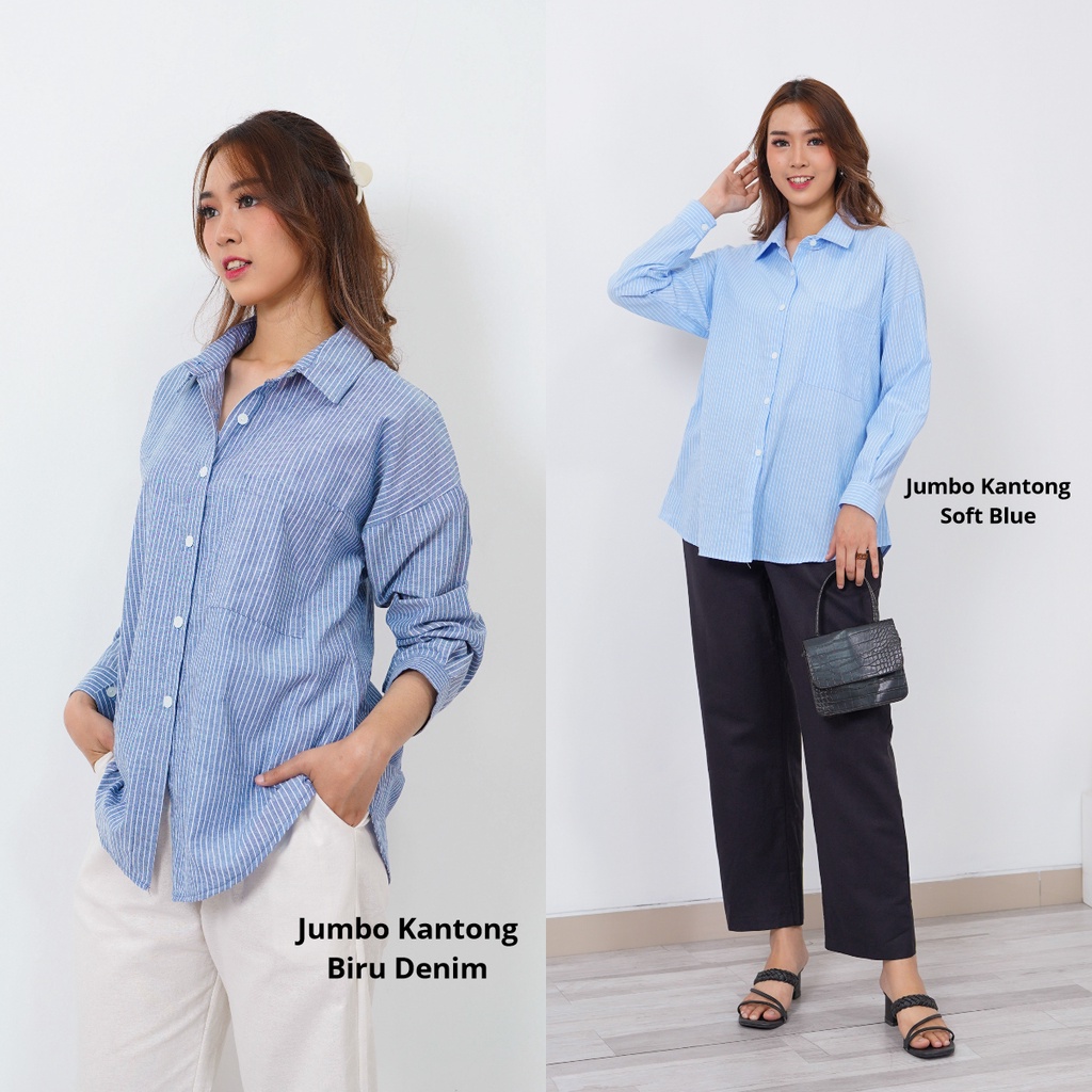 Laila Stripe kemeja full katun cotton salur basic wanita motif stripe ada JUMBO 2155 / 2532 / 2986