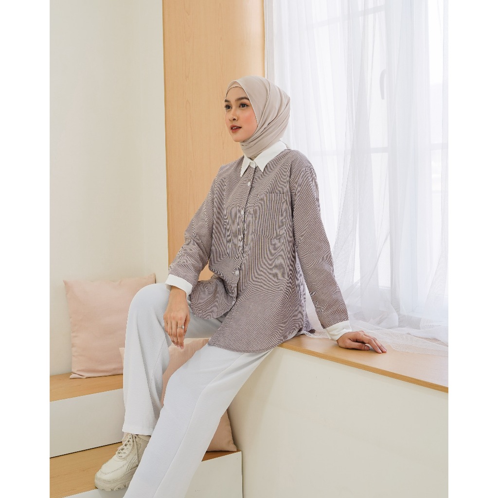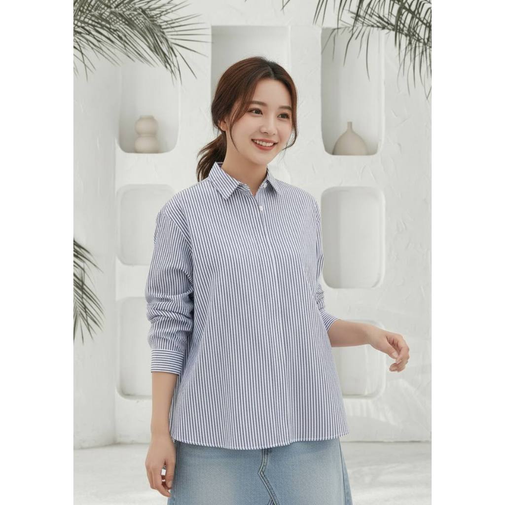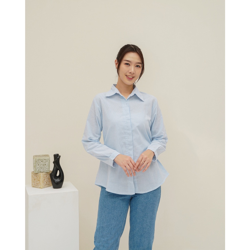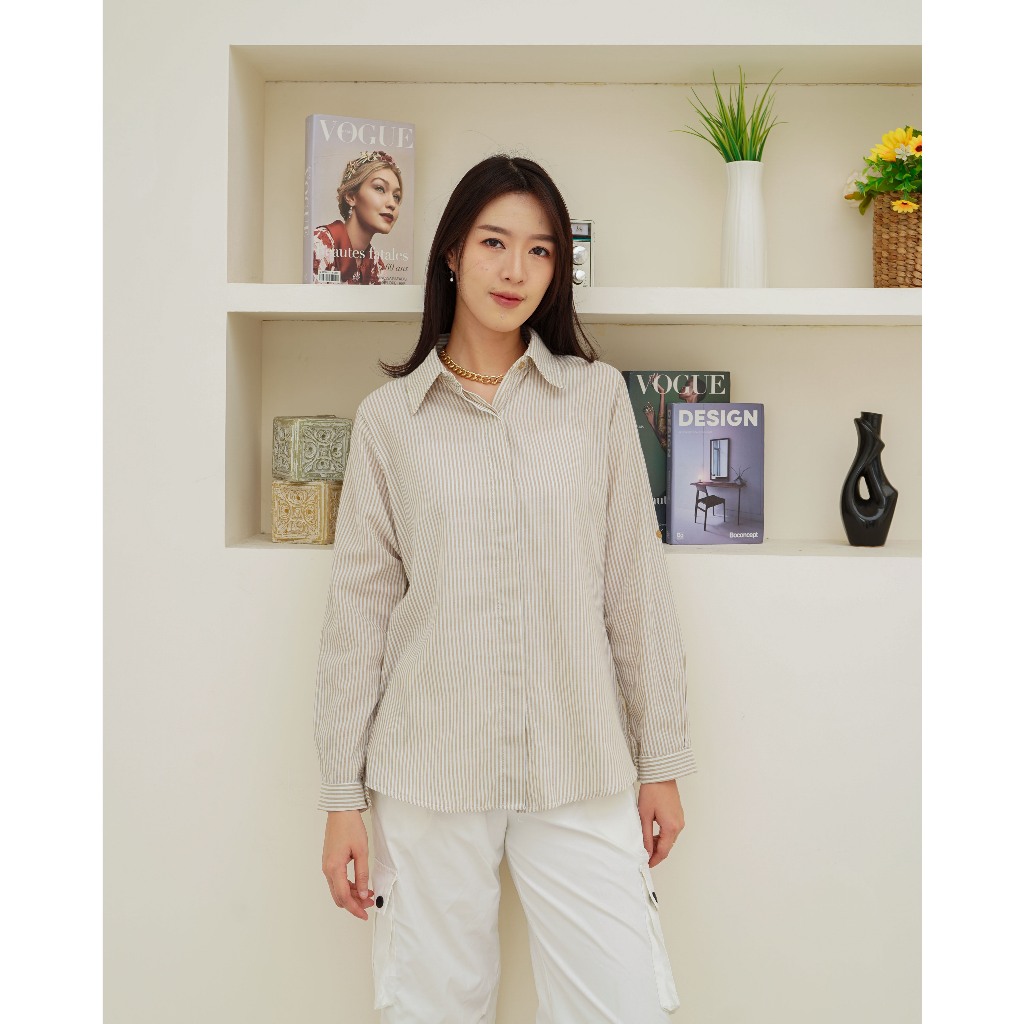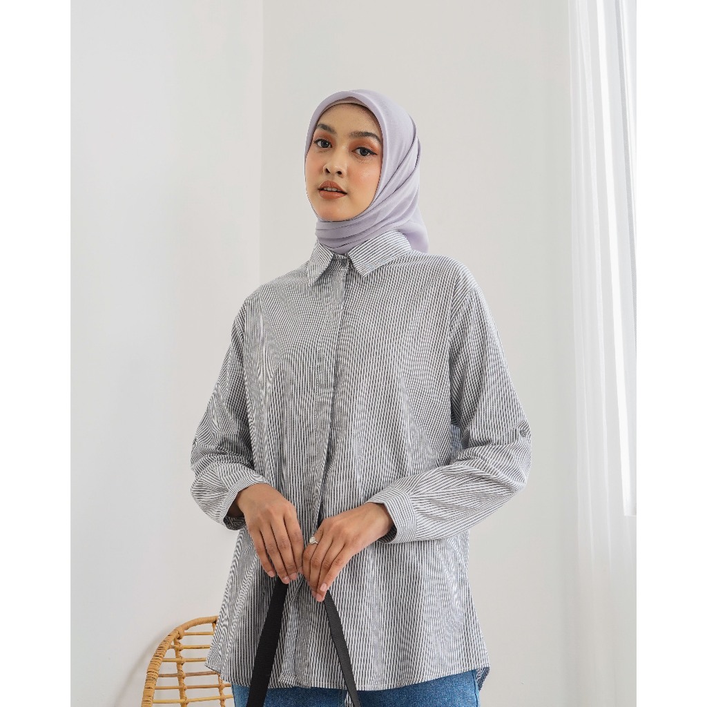 Laila Stripe kemeja full katun cotton salur basic wanita motif stripe ada JUMBO 2155 / 2532 / 2986