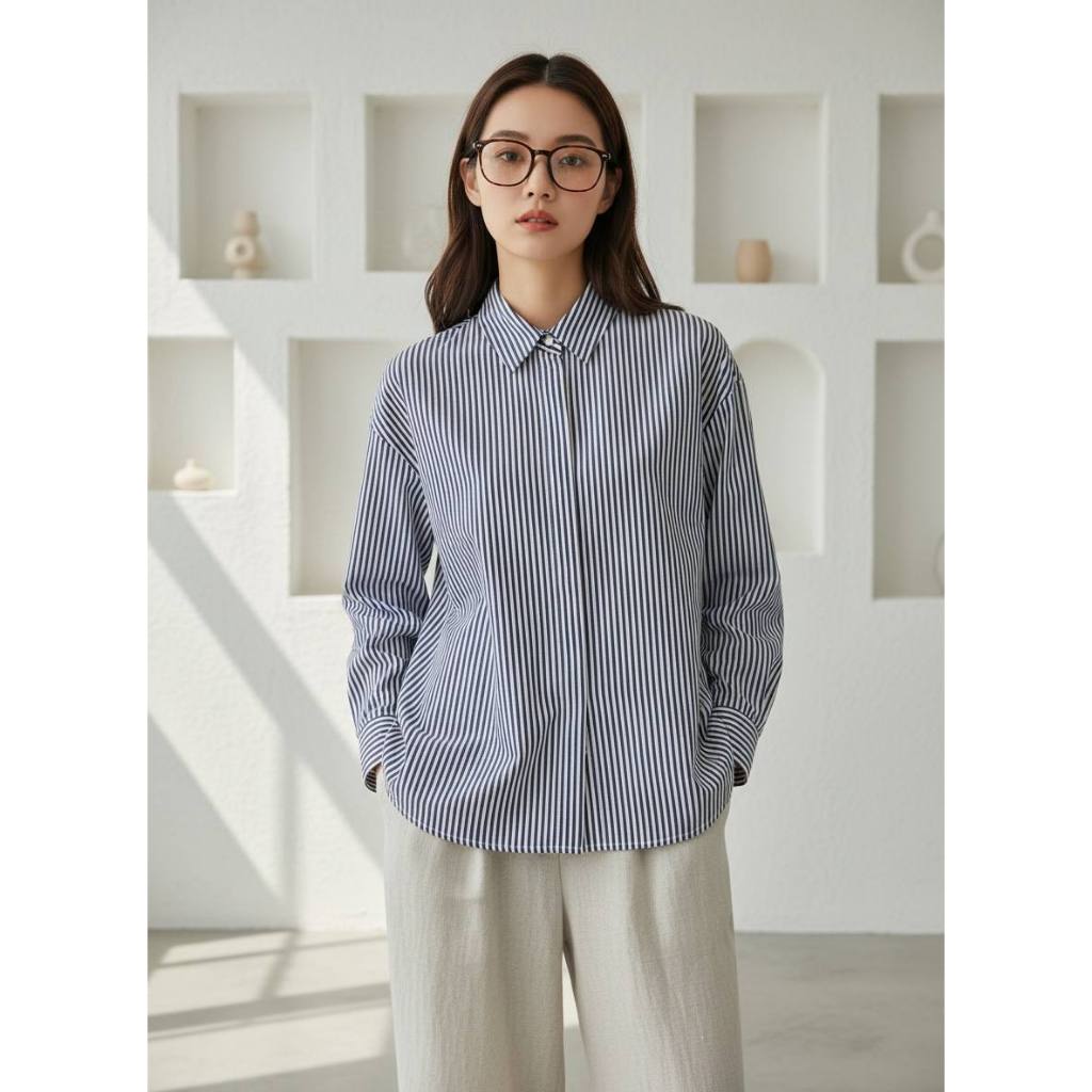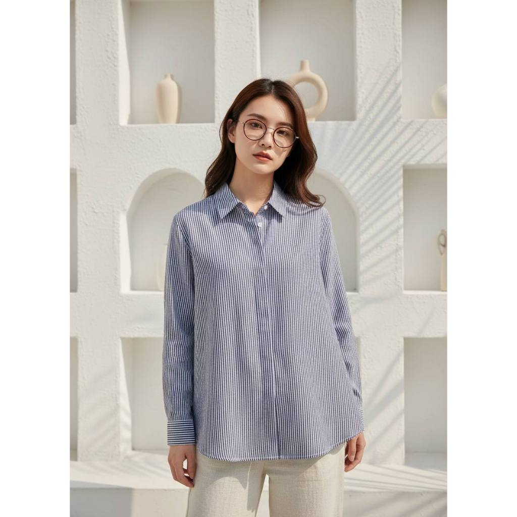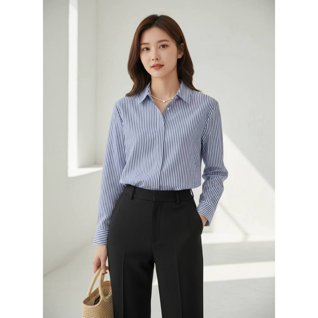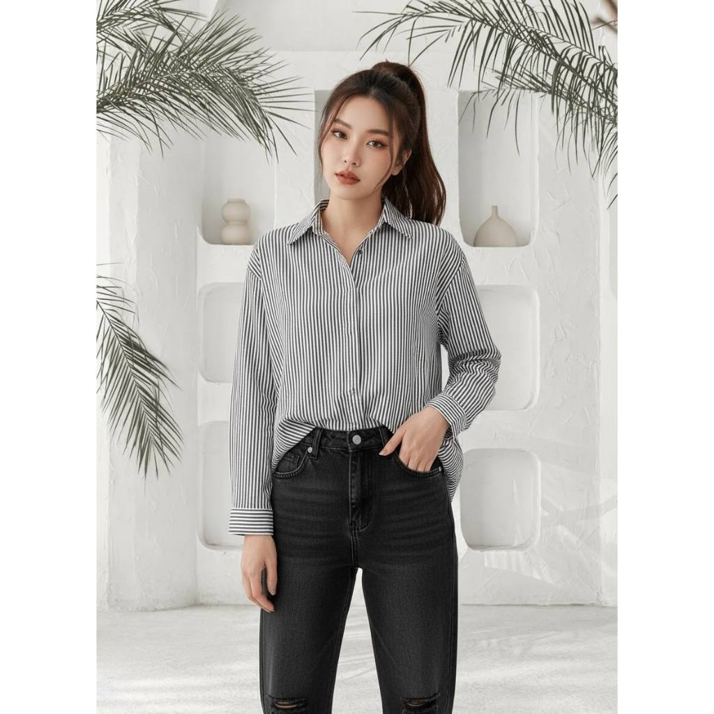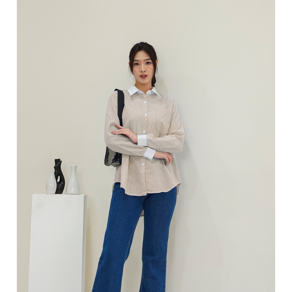 Laila Stripe kemeja full katun cotton salur basic wanita motif stripe ada JUMBO 2155 / 2532 / 2986