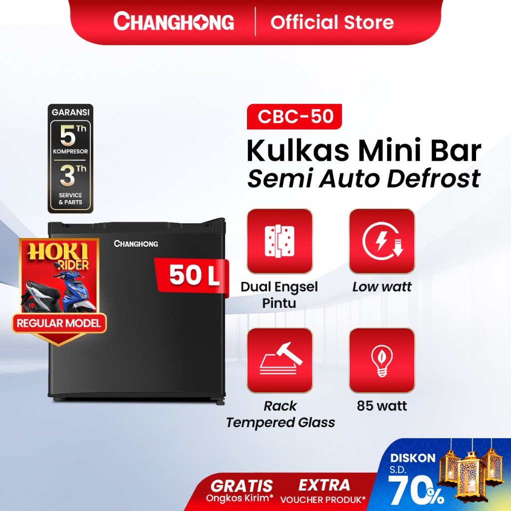 [SMART CHOICE] Changhong Kulkas Mini Bar (Refrigerator) Lemari Es Kapasitas 50 Liter CBC 50 (Semi Auto Defrost) (Adjustable Door Bisa Di Buka dari Kiri/Kanan) (Kulkas Simple Minimalis) (Freezer Yang Terpisah) (Tidak Bising)