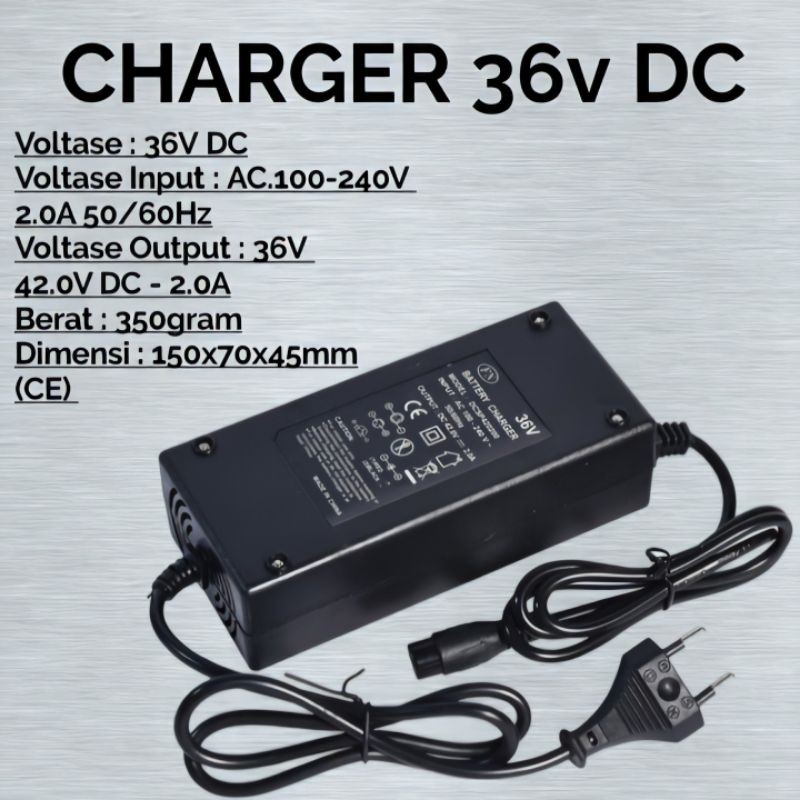 Charger Aki/Baterai Lihium Ion 36V DC untuk semua jenis skuter dan sepeda listrik