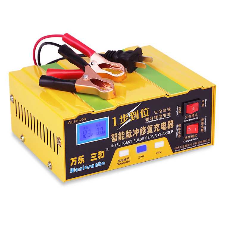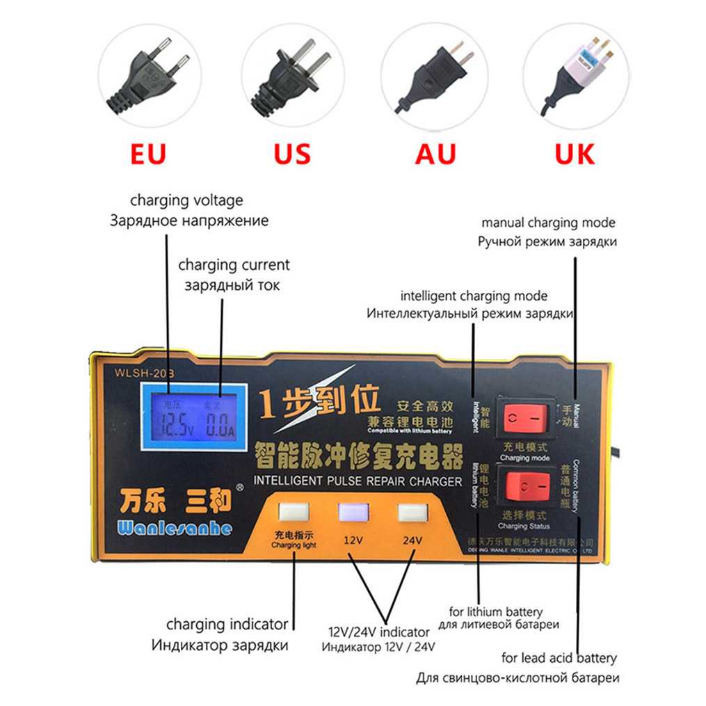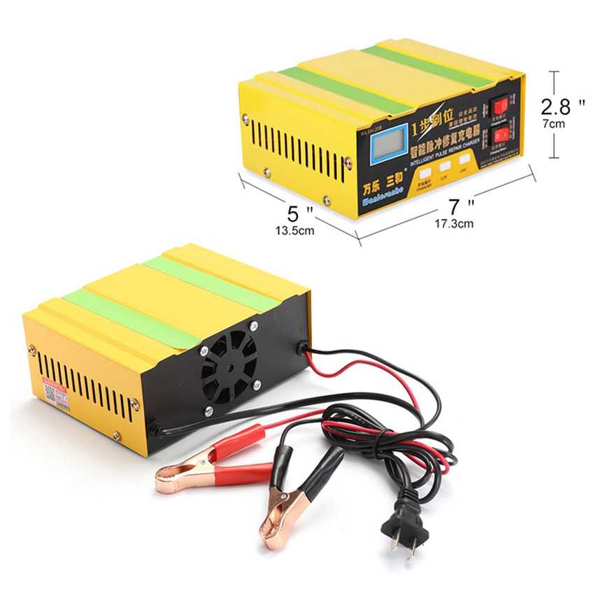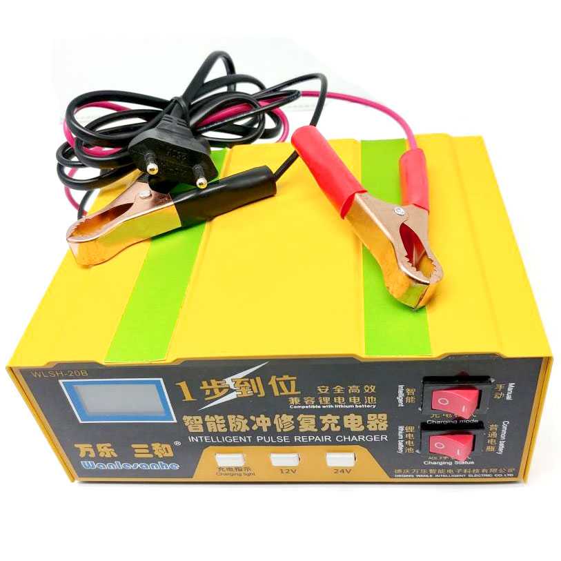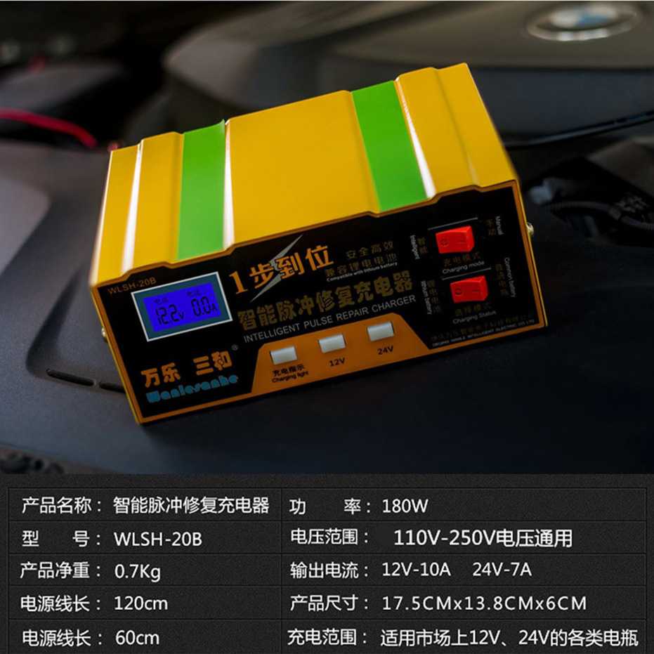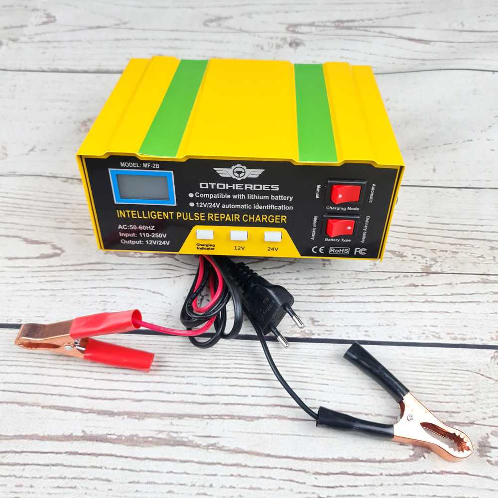 Charger Aki Mobil Lead Acid Battery Charger Colokan EU 12V/24V Otomatis Layar LCD