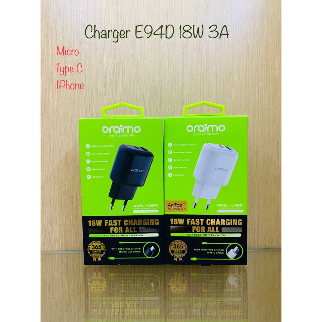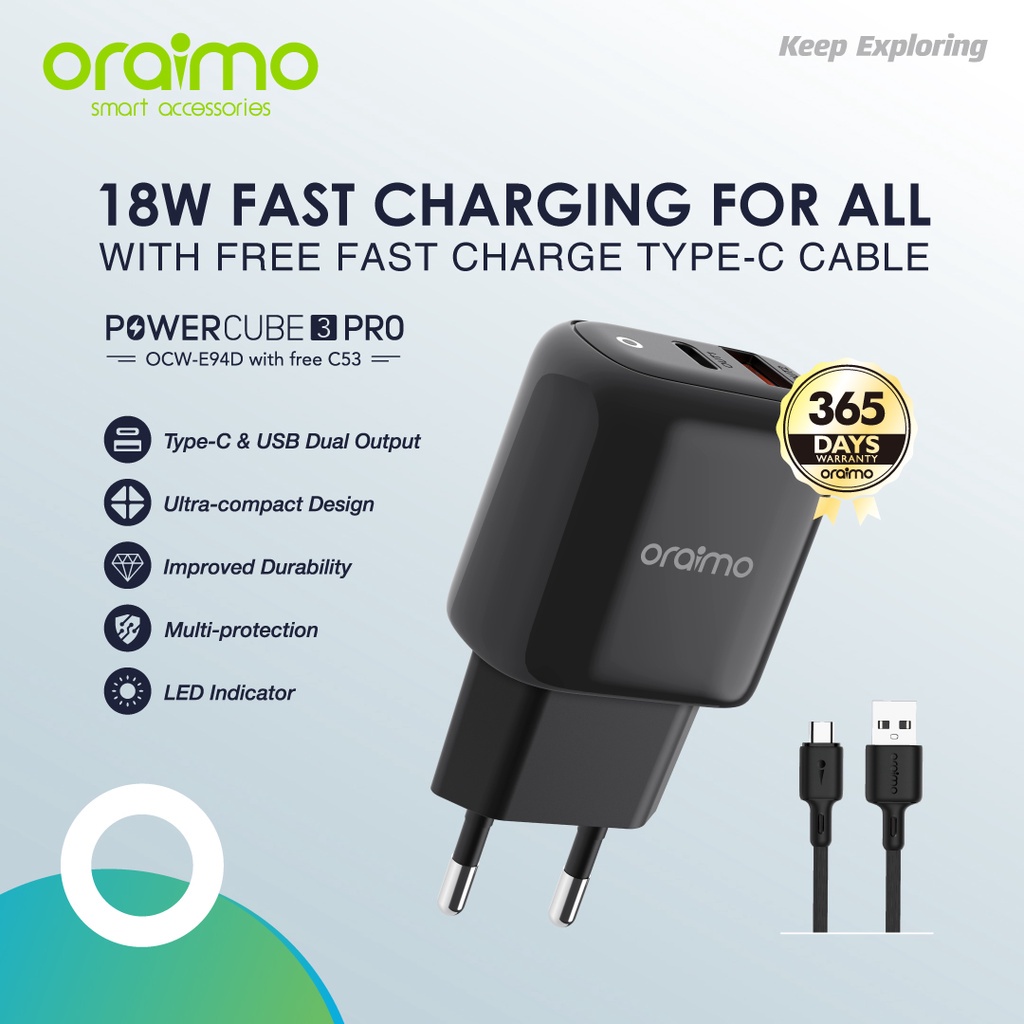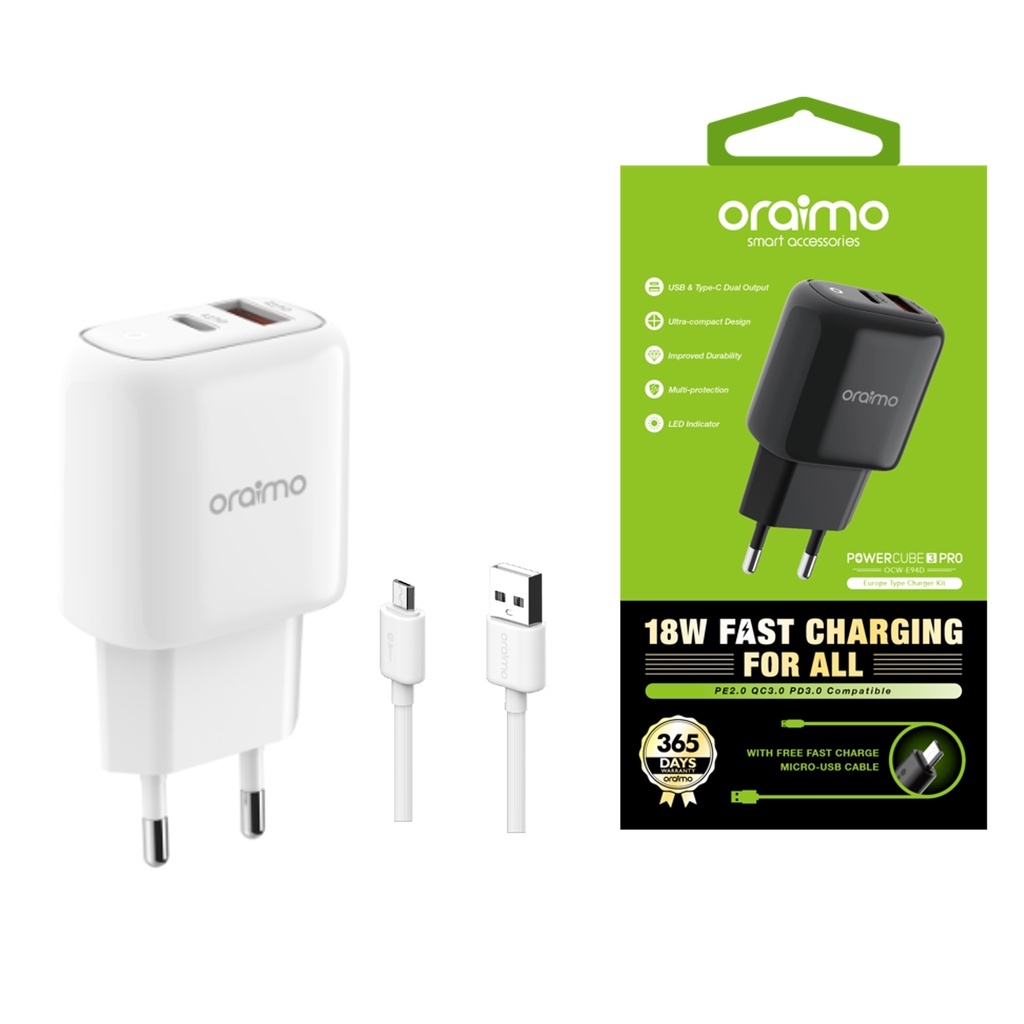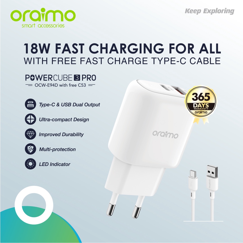 Charger Fast Charging Type C Oraimo PowerCube 3 Pro Charger Dual Port Fast Charging OCW-E94D+C53 Type C