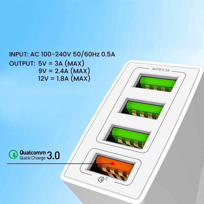 Charger HP Fast Charging 4 USB Port Quick Charge QC Adaptor Carger Cas Casan Cepat Handphone 48W 3A
