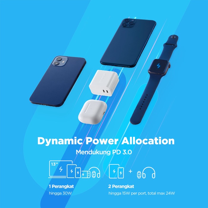 INNERGIE Kepala Charger Type C Adaptor Laptop Iphone Macbook Asus C3 Duo 30W Type C 2 Port PD Fast Charging