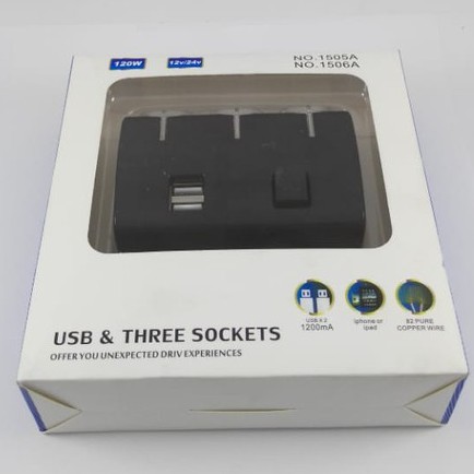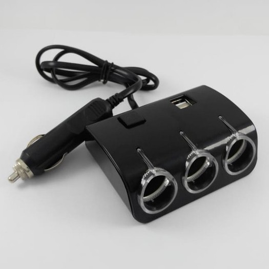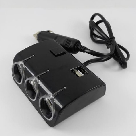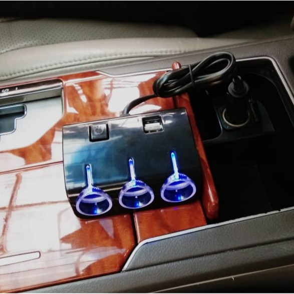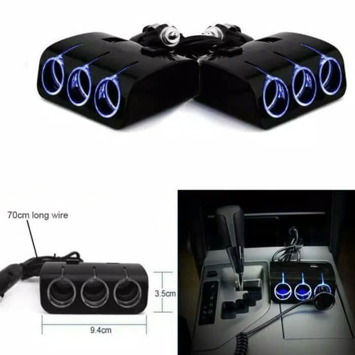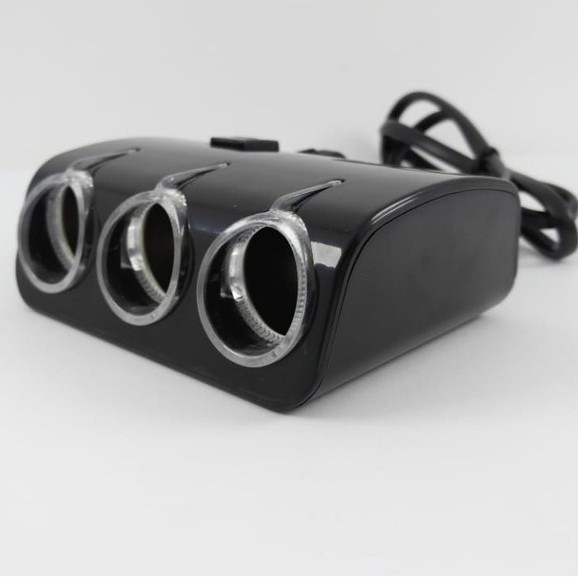 Charger Mobil 3 Slot Sockets Lighter + 2 Slot USB Socket Splitter Mobil Hitam
