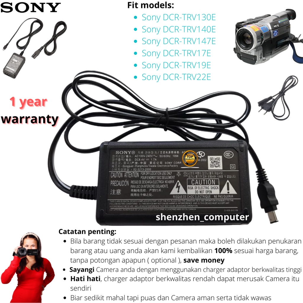 Charger Sony DCR-TRV130E TRV140E TRV147E TRV17E TRV19E TRV22E Handycam Camcorder adapter adaptor