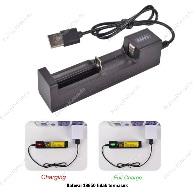 Charger USB Baterai 18650 Auto Cut Off Otomatis Cas Batre isi Ulang Led Indikator 1 Slot Adaptor Pengisi Daya Batrei Senter Police Swat Full Self Stop