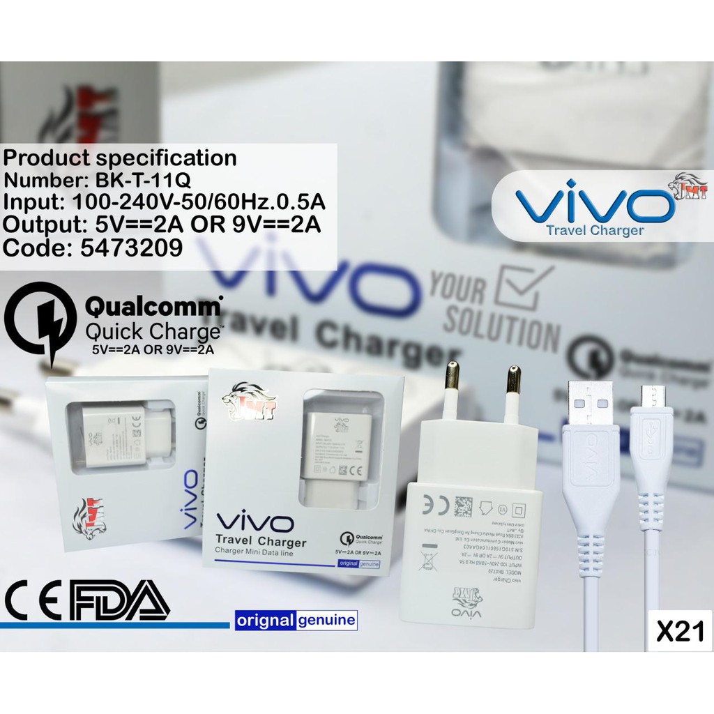 Charger VIVO Original 100% Fast Charging 9V-2A / Charger Vivo V11 V9 V7 V5 V5max V3max Y71 Y83 Y91(BS)