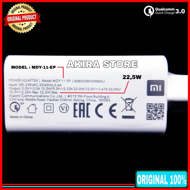 Charger Xiaomi Redmi Note 10 5G ORIGINAL 100% 22W Fast Charging Type C