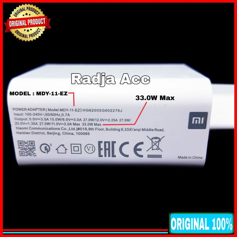 Charger Xiaomi Redmi Note 9 Pro TURBO CHARGE 33W Original 100% Type C