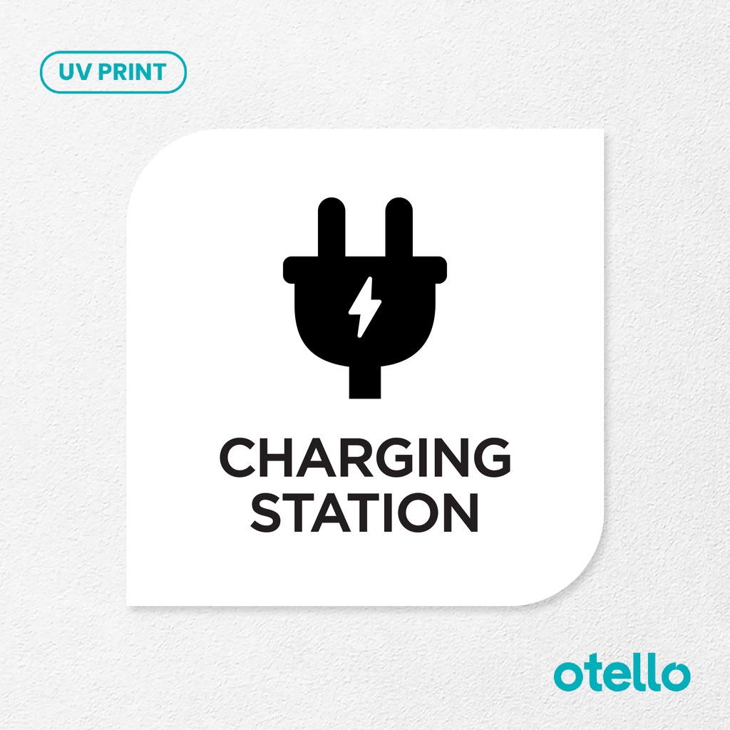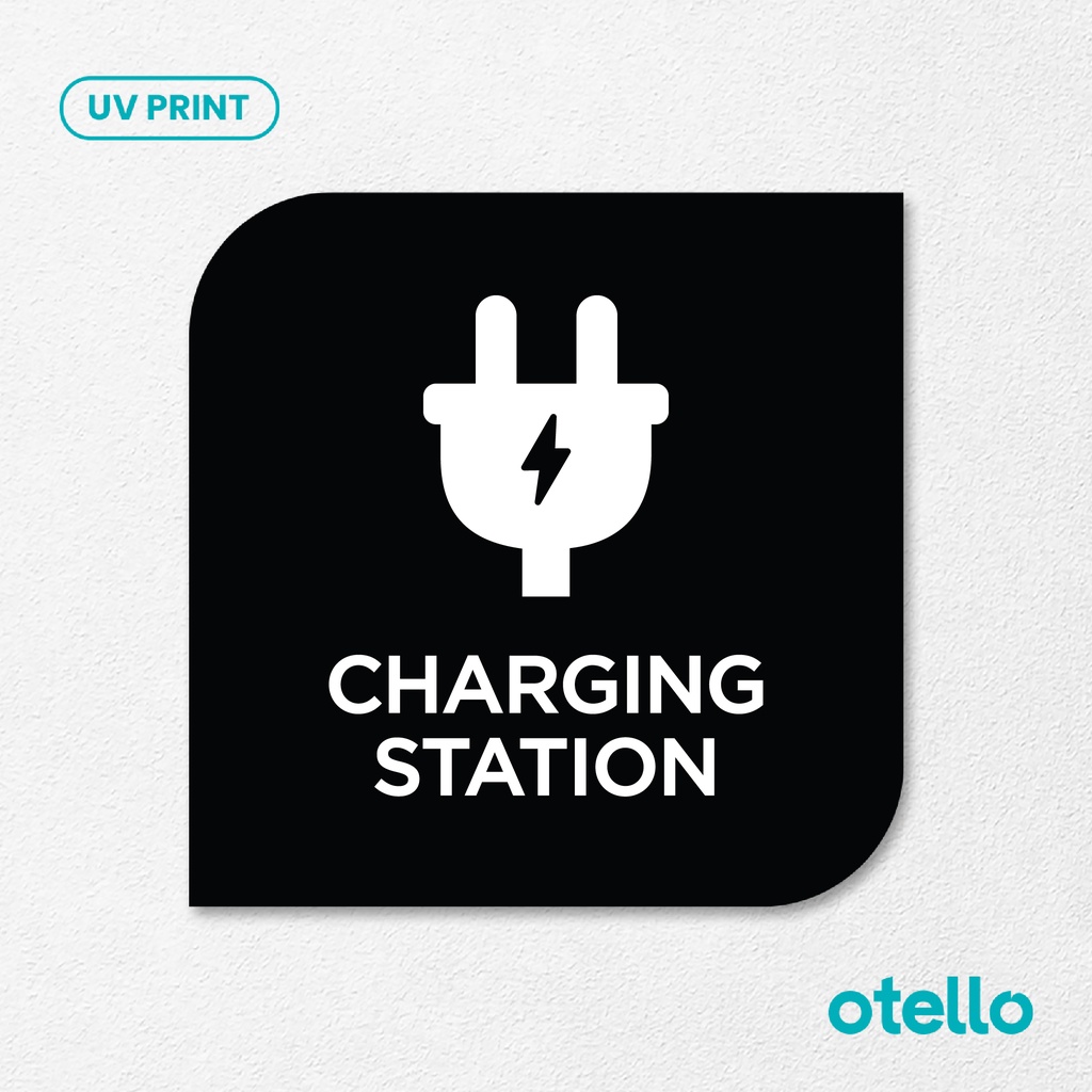 Charging Station Signage Board Akrilik Tempel Dinding Papan Acrylic Sign Board Signage Tempel Dinding Tulisan Label Tanda Petunjuk Rambu Aklirik UV Print