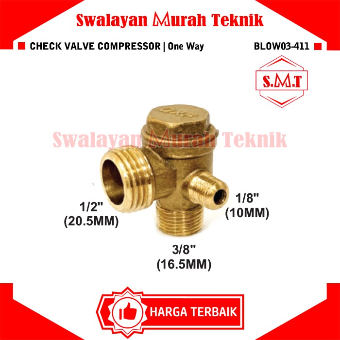 Check Valve Compressor 03-411 Nepel Kompresor Drat Kuningan 3 Way