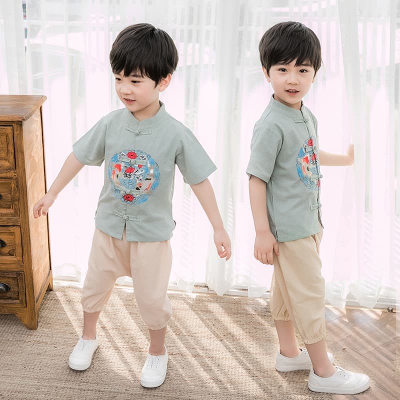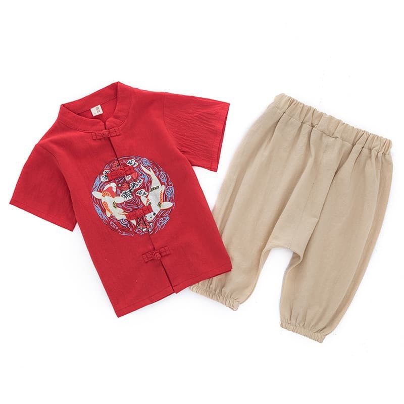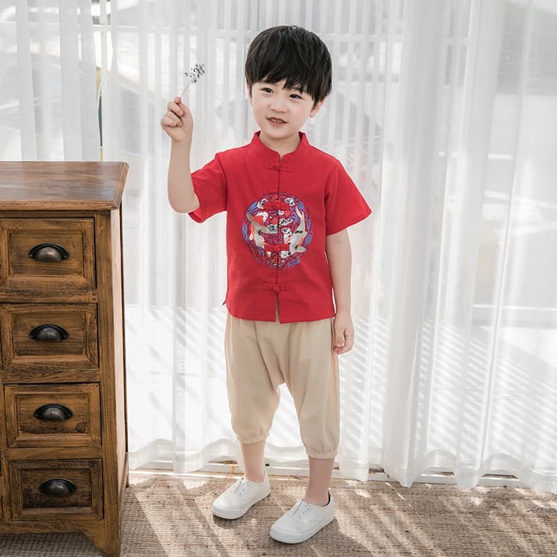 Cheongsam anak laki laki chinese new year traditional clothes golden koi fish boy