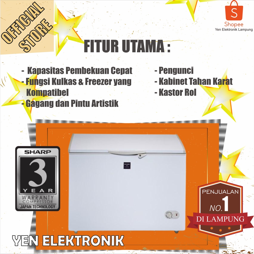 Chest Freezer Sharp FRV 300 Box Freezer 300 Liter Garansi Resmi Sharp 3 Tahun