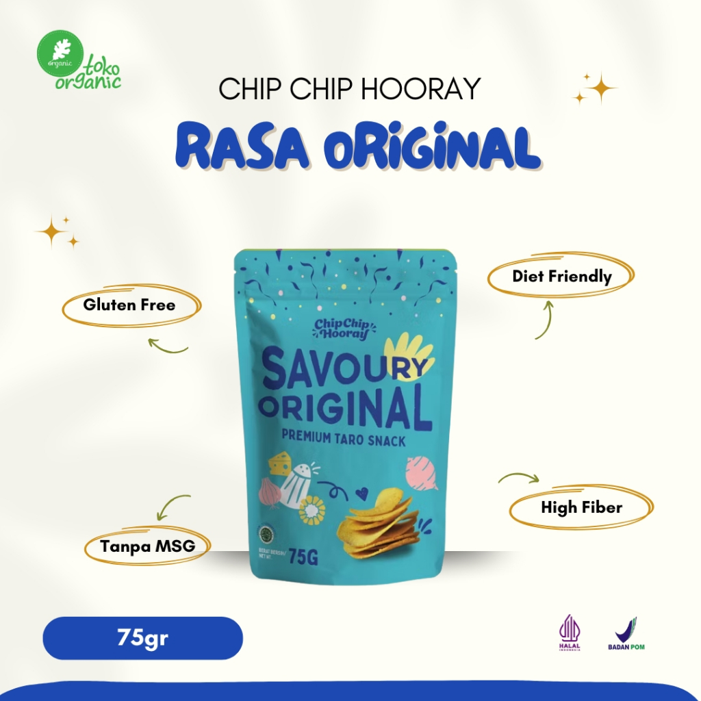 ChipChip Hooray Premium Taro Snack (75g) | Keripik Kripik Talas No MSG, Camilan Sehat Diet Friendly, Taro Chips Camilan Sehat