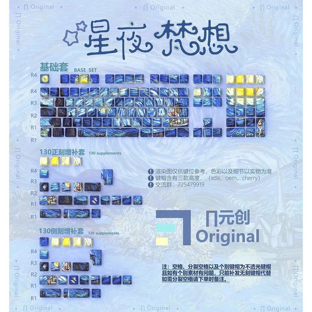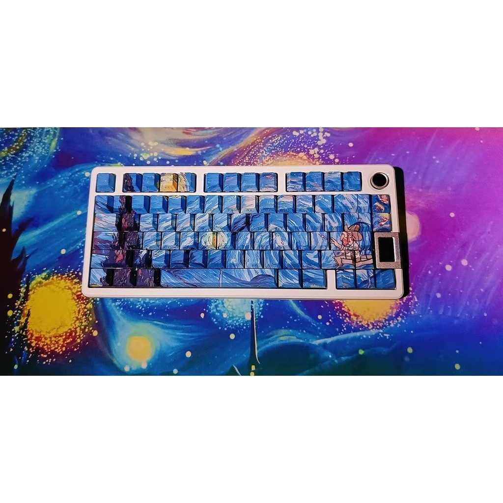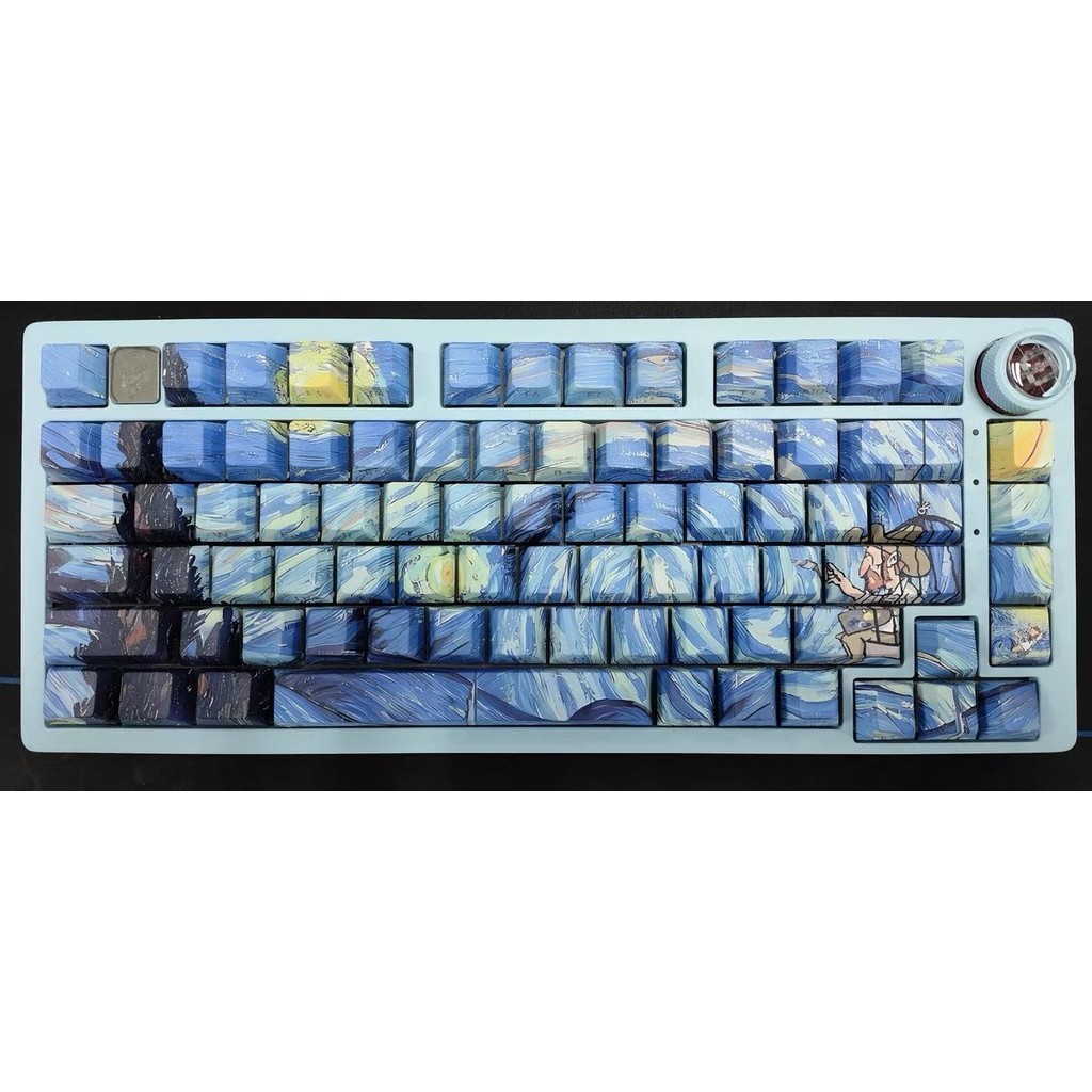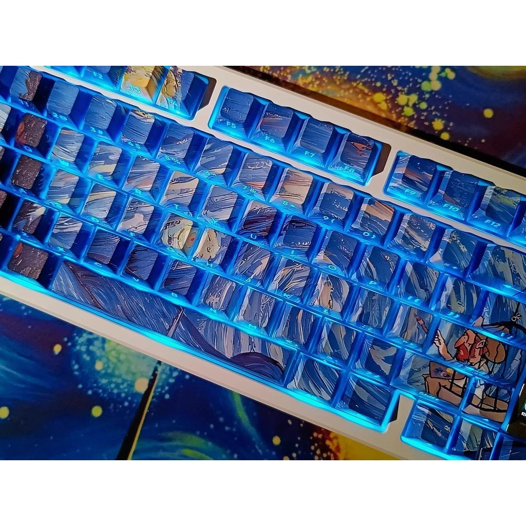 Chreey Keycap PBT130 keys Van Gogh Starry Night Thermal Sublimation Translucent Keyboard Cap for Mechanical Keycap MX Switch