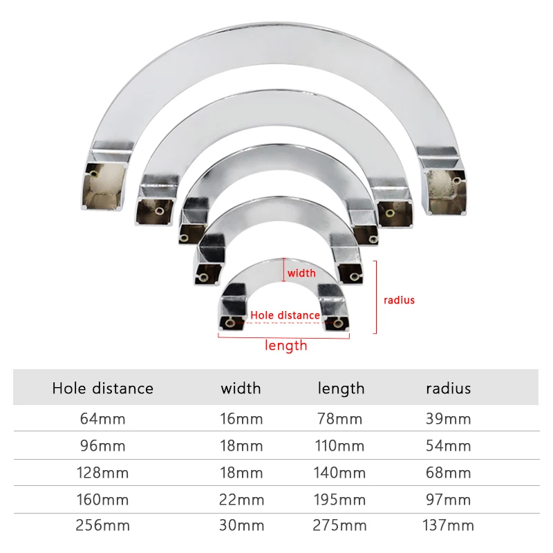 Chrome Half Circle Handle Setengah Lingkaran Sabit Lengkung Silver