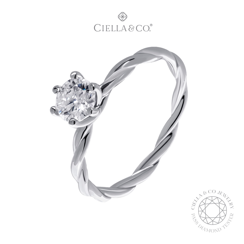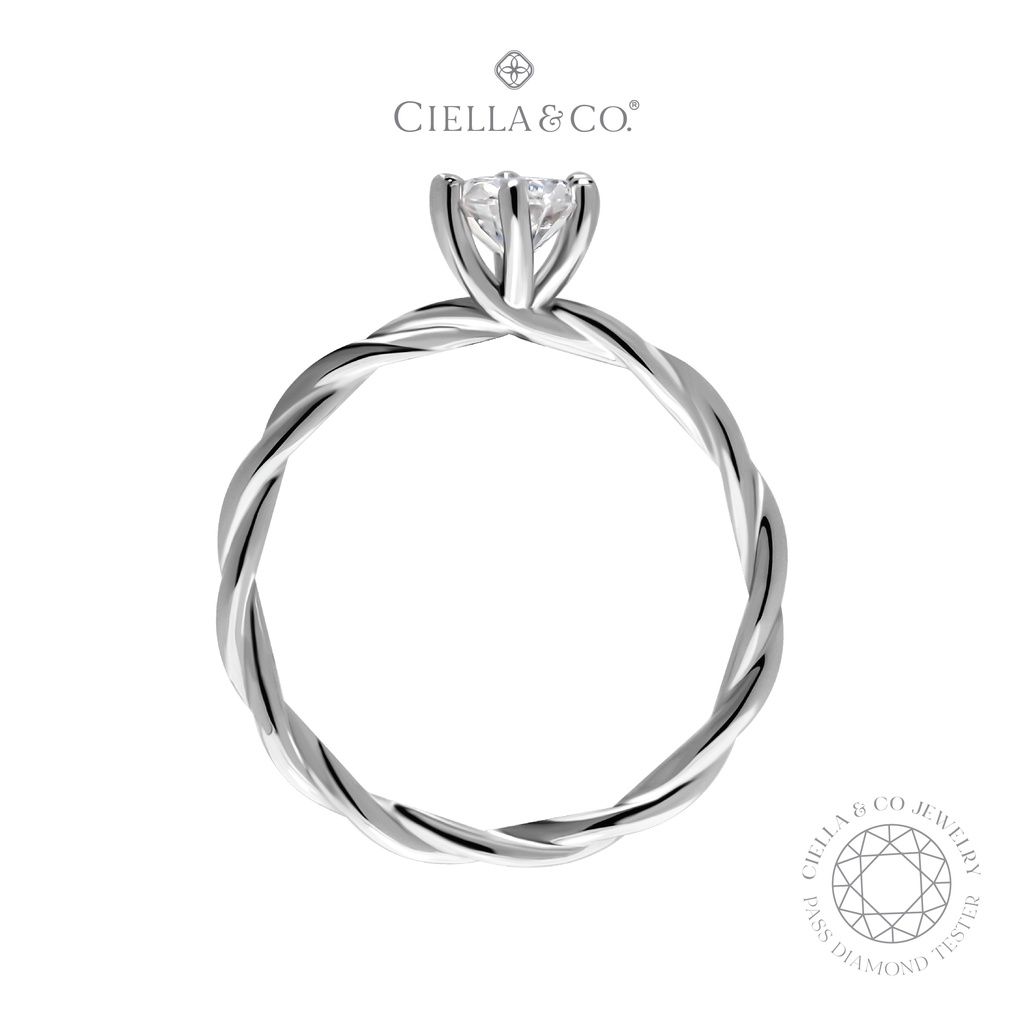 Ciella & Co - Twisted Rope Solitaire Ring Cincin Tunangan Moissanite Engagement Ring Cincin Moissanite Wanita Perhiasan Silver 925 Lapis Emas 18K