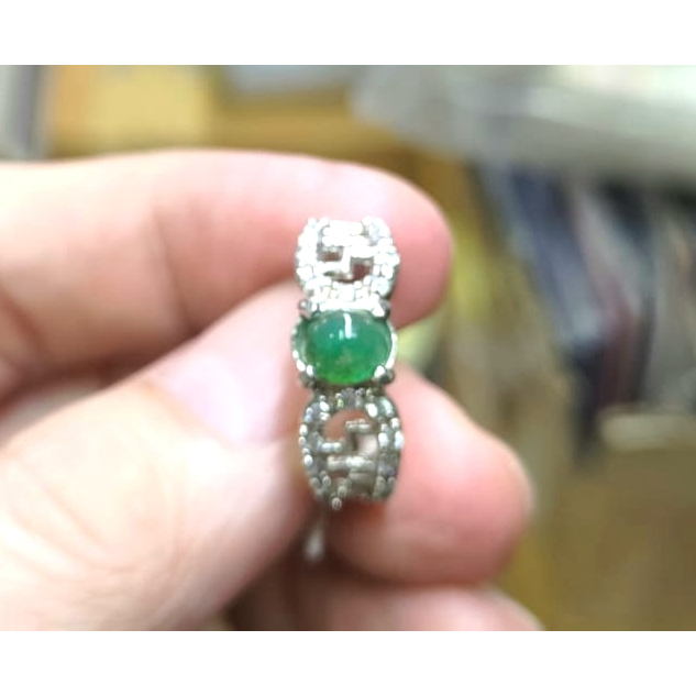 Cincin Batu Bacan Doko Cewek BC116 Hijau Botol Ikatan Perak Mewah