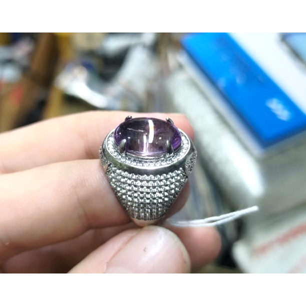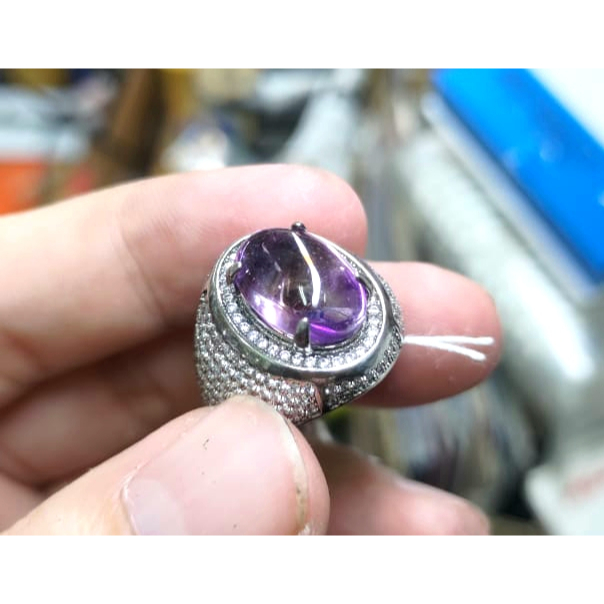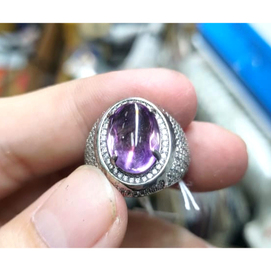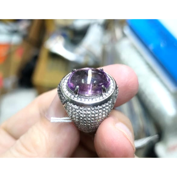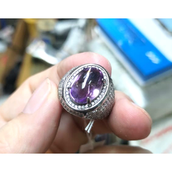Cincin Batu Kecubung Bungur Tanjung Bintang KCB018 Amethyst Kwalitas Super Ikatan Perak Mewah