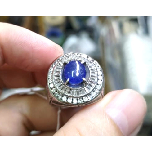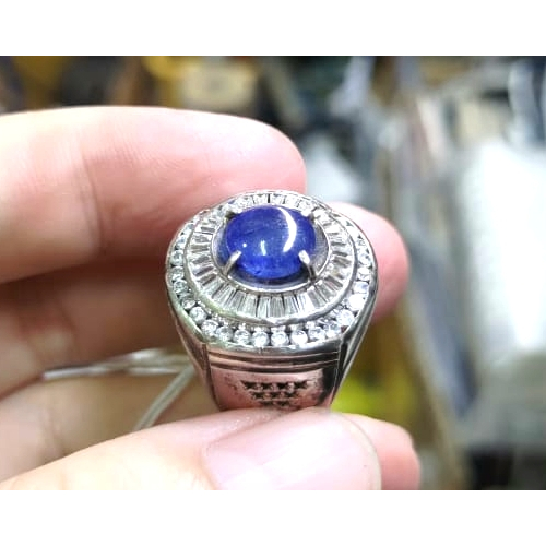 Cincin Batu Natural Blue Sapphire SF024 Blue Safir Istimewa Ikatan Perak Mewah