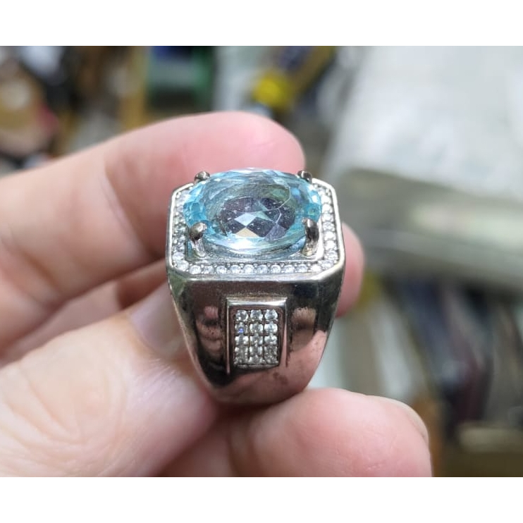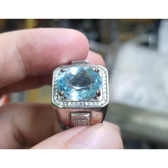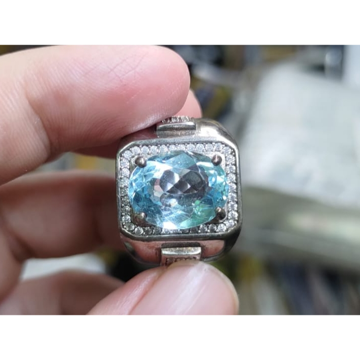 Cincin Batu Swiss Blue Topaz TPZ005 Istimewa Ikatan Perak Mewah