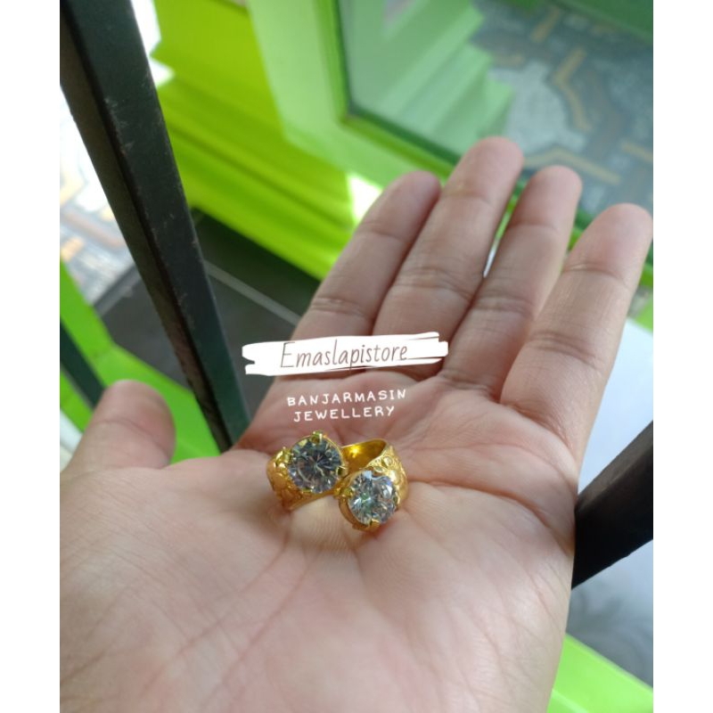 Cincin Jumbo Selisih Ukir Permata 2 Lapis Emas 999 Banjar