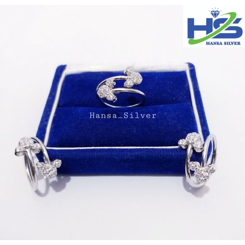 Cincin Perak Asli Silver 925 Lapis Emas Putih Model Mickey Mouse - Perhiasan Perak Wanita